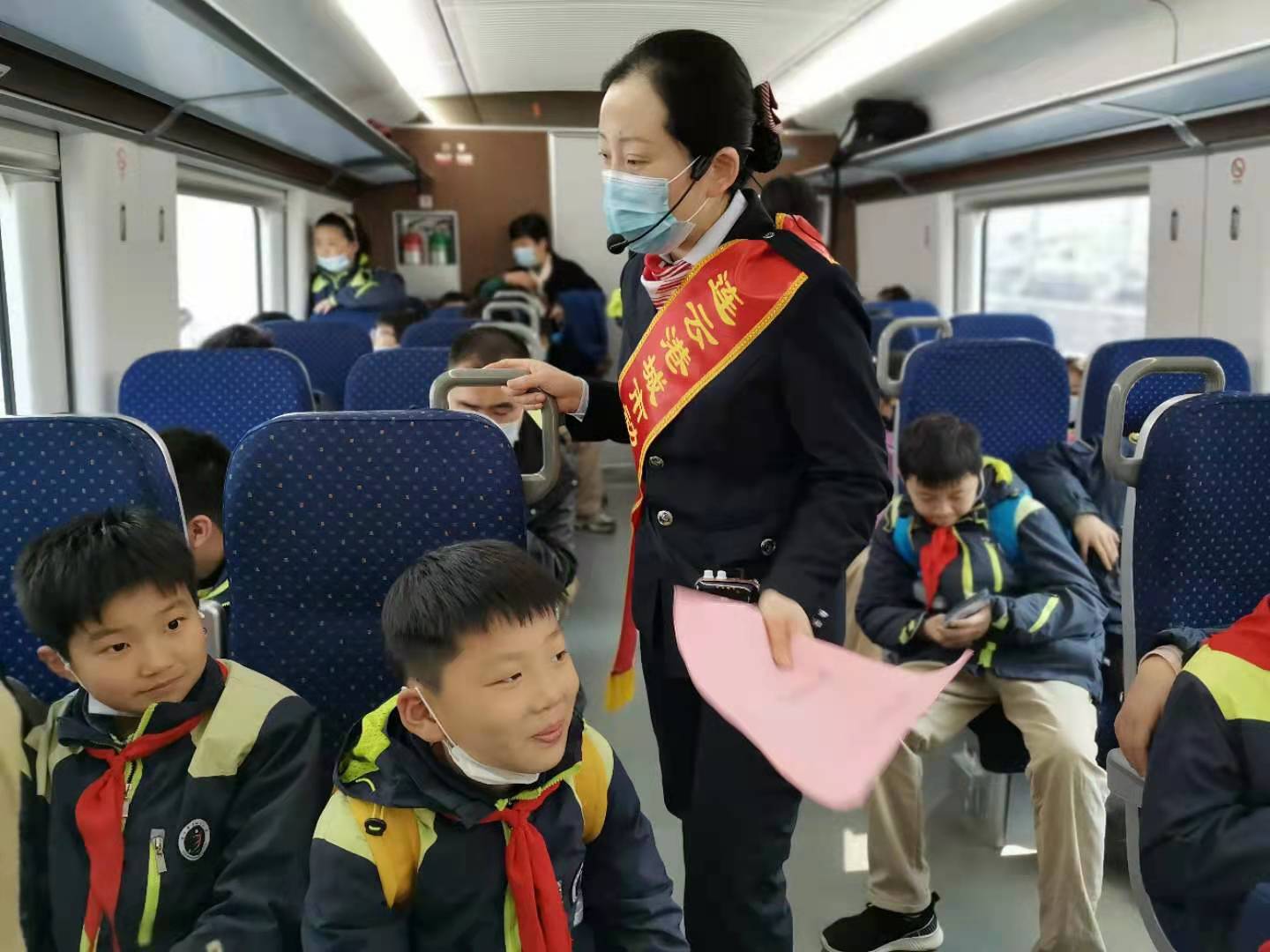 4月9日早晨,墟溝小學(xué)的師生們整裝待發(fā),來到城市動車墟溝站,體驗城市動車舒適快捷。城市動車站務(wù)員們熱情接待了他們,站務(wù)員給同學(xué)們介紹了墟溝站的概況,尤其是墟溝站的頂棚設(shè)計采用起伏多變的波浪造型,它象征著“星辰大海”,體現(xiàn)港城特色的海洋文化。同學(xué)們在月臺等候列車時,看見列車駛?cè)胝九_,同學(xué)們沸騰了,大聲說到:“美猴王踏著祥云向我們飛來了。”在車上,站務(wù)員們?yōu)橥瑢W(xué)們講解了城市動車的概況、乘車禁止攜帶的危險品及高鐵、動車、普速列車的區(qū)別。高鐵是以G開頭的車次,動車是以D開頭的車次;高鐵時速是在300公里以上,動車時速是在200公里以上;高鐵使用的是專用鐵軌,動車使用的既可以是高鐵專用鐵軌,也可以是經(jīng)過改裝的普通鐵軌;高鐵可以稱作專線,設(shè)置的站臺很少,動車全線設(shè)置,站臺較多;動拖比不同,高鐵屬于強動力分散型,動車屬于弱動力分散型;動車比普速列車速度快是因為動力不同,動車是無牽引力軌道車輛,裝配有驅(qū)動車輪;而普速列車是由一至三節(jié)機車牽引若干車廂或車皮組成。同學(xué)們聽完講解,熱情高漲,并與站務(wù)員相互交流。在不知不覺中,列車已經(jīng)到達了終點站連云站。墟溝小學(xué)張校長講,通過這次活動不僅讓同學(xué)們感受到了城市動車的舒適快捷,也豐富了同學(xué)們的課外知識,并為你們熱情服務(wù)和業(yè)務(wù)素養(yǎng)點贊。