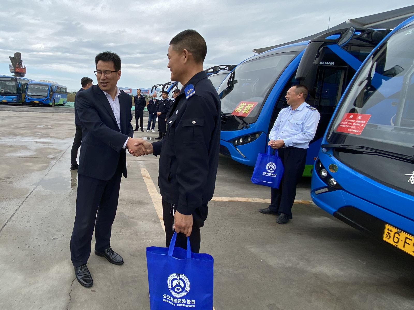 5月20日當天,公交集團領(lǐng)導班子成員分別來到西城公交總站、徐圩公交場站、大港路停車場、植物油廠,為駕駛員們送上一份節(jié)日禮品。