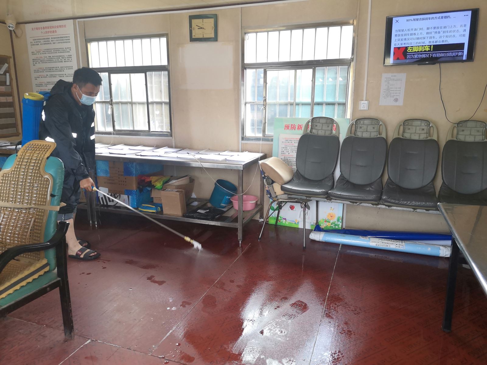 具體措施為,一是各場(chǎng)站按照疫情防控相關(guān)標(biāo)準(zhǔn),添加配比好的消毒液,對(duì)車(chē)棚、飲水間及高頻次接觸的物品等進(jìn)行消毒,每2-3小時(shí)消毒一次。二是對(duì)辦公場(chǎng)所,人員密集區(qū)域進(jìn)行消毒,要求每天不少于4次。三是駕駛員對(duì)車(chē)輛執(zhí)行一趟一消毒,打開(kāi)門(mén)窗通風(fēng),車(chē)內(nèi)垃圾一趟一傾倒,收班后對(duì)車(chē)內(nèi)進(jìn)行全面消毒,特別是刷卡機(jī)、座位處、扶手、欄桿、空調(diào)出風(fēng)口處等部位。四是所有員工每天到崗接受體溫檢測(cè),并做好臺(tái)賬登記。