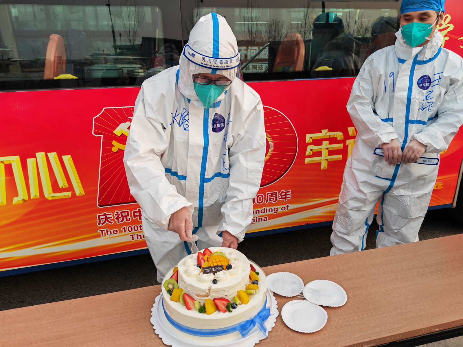 “這個(gè)月我們有四位同志過(guò)生日,因疫情工作原因,大家都堅(jiān)守在抗疫一線,沒(méi)能慶祝生日,在這個(gè)特殊的時(shí)間里,今天大家一起為你們過(guò)一次’疫’線集體生日!”轉(zhuǎn)運(yùn)工作組領(lǐng)導(dǎo)為他們送上了生日祝福。
