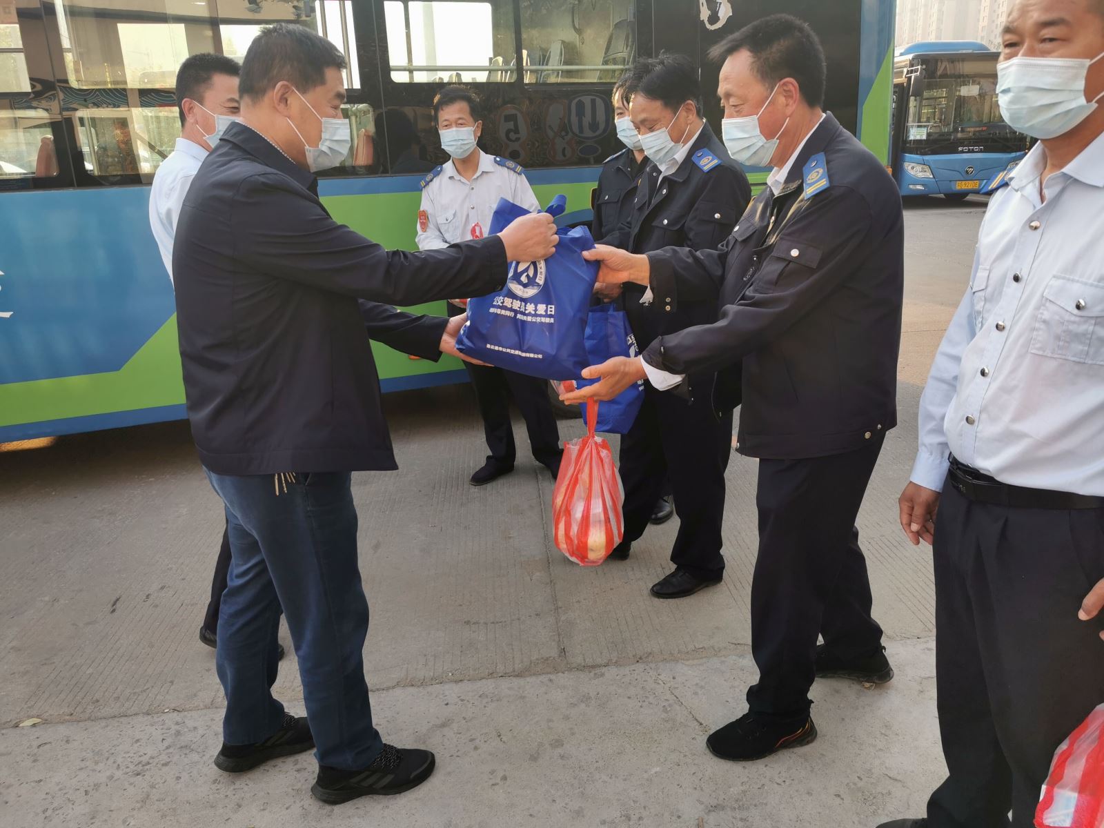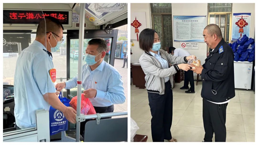 公交集團(tuán)權(quán)屬各事業(yè)部管理人員為早班發(fā)車駕駛員送上溫馨的早餐,早餐中還有一個(gè)蘋果,寓意“平平安安”,希望他們高高興興出門,平平安安回家。