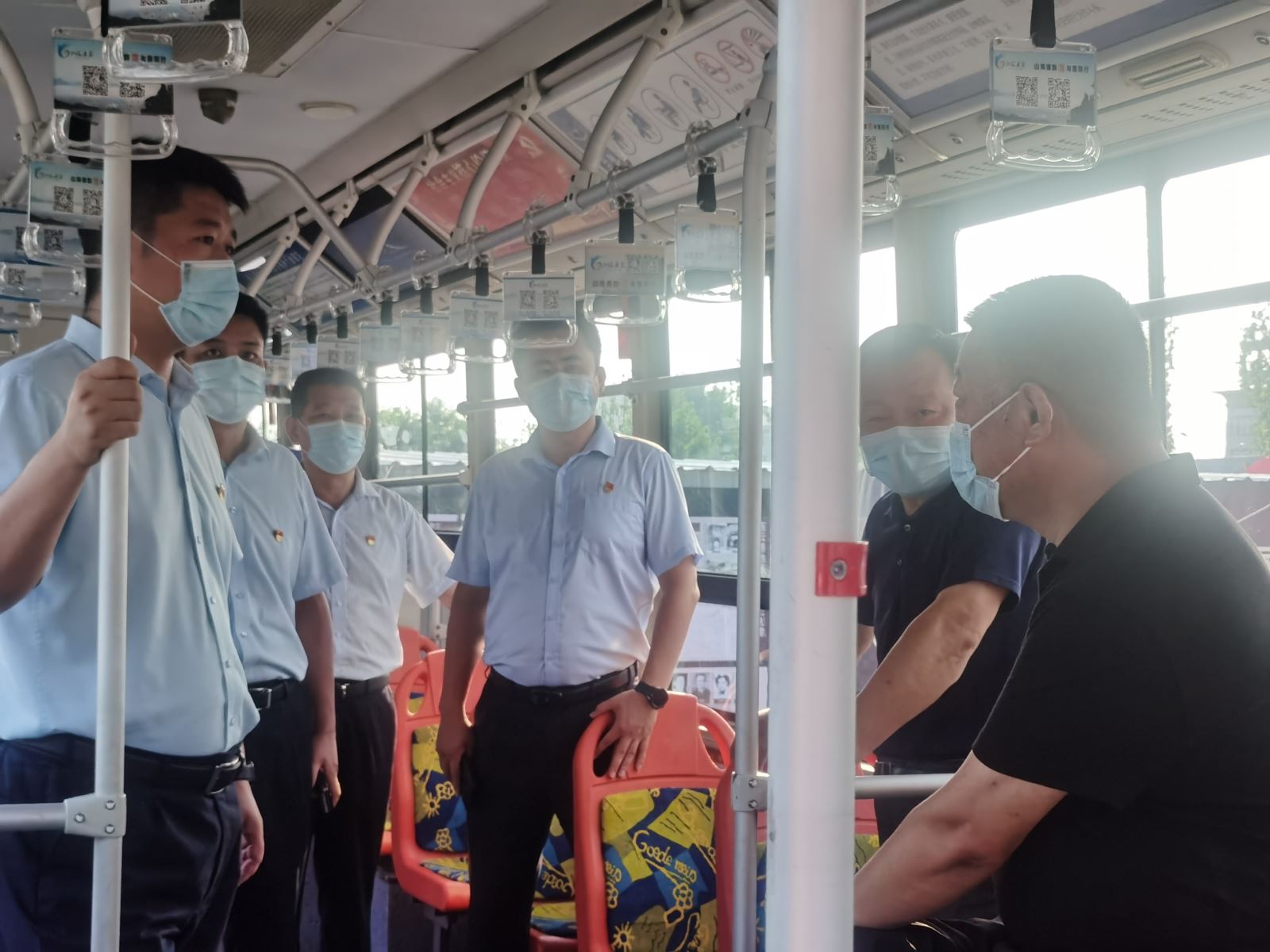 調(diào)研中,張海組長(zhǎng)一行來(lái)到公交集團(tuán)財(cái)校場(chǎng)站進(jìn)行實(shí)地了解和查看,首先聽(tīng)取王學(xué)兵對(duì)公交廉潔文化建設(shè)工作開(kāi)展情況和今后工作思路的介紹,接著參觀了公交15路、19路廉政文化示范車及“中共黨史文化墻”。示范車以“山海廉韻·與廉同行”為主題,車身外運(yùn)用連云港山與海的結(jié)合,寓意廉潔文化建設(shè)如同山一樣厚重、海一樣廣闊,彰顯港城廉政建設(shè)的獨(dú)有特點(diǎn)。車廂內(nèi)主要利用多媒體設(shè)備、拉手、看板、座椅等,多方位多角度的展現(xiàn)警句格言、廉政漫畫(huà)、本地清官故事等人文和廉潔元素,讓廉潔文化建設(shè)走進(jìn)市民乘客身邊,推進(jìn)新時(shí)代黨風(fēng)廉政建設(shè)和廉潔文化建設(shè)工作,張海組長(zhǎng)對(duì)公交集團(tuán)廉潔文化建設(shè)工作給予了肯定。