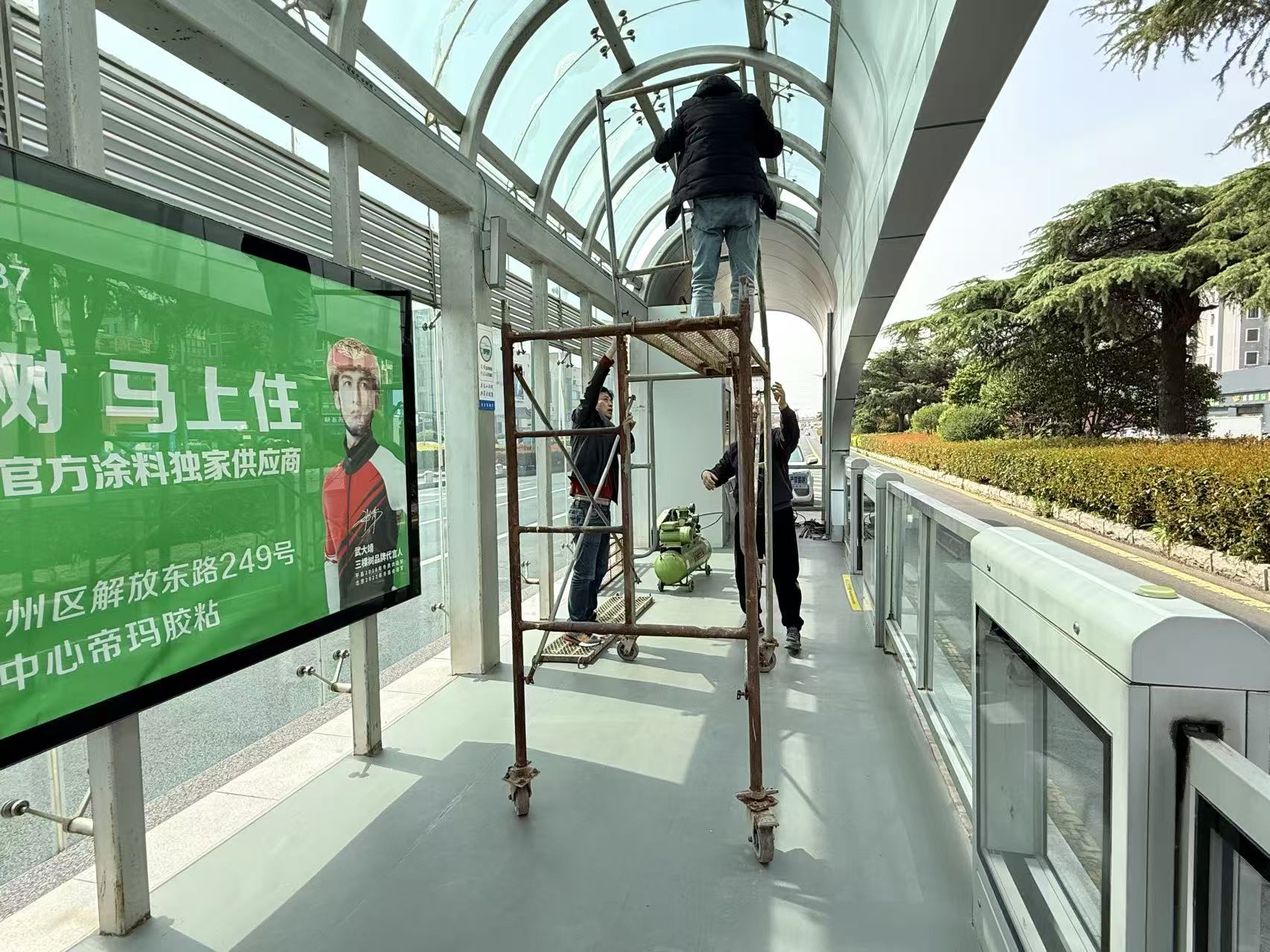 公交站臺(tái)是城市的窗口,為進(jìn)一步改善市民候車環(huán)境,扮靚城市窗口,提升城市文明形象,近日,公交集團(tuán)快速公交對(duì)BRT一號(hào)線公交站臺(tái)開展噴漆翻新工作,解決了站臺(tái)因使用年限較長而出現(xiàn)銹蝕及油漆脫落等問題,讓站臺(tái)煥然一新,為市民營造良好的出行環(huán)境。