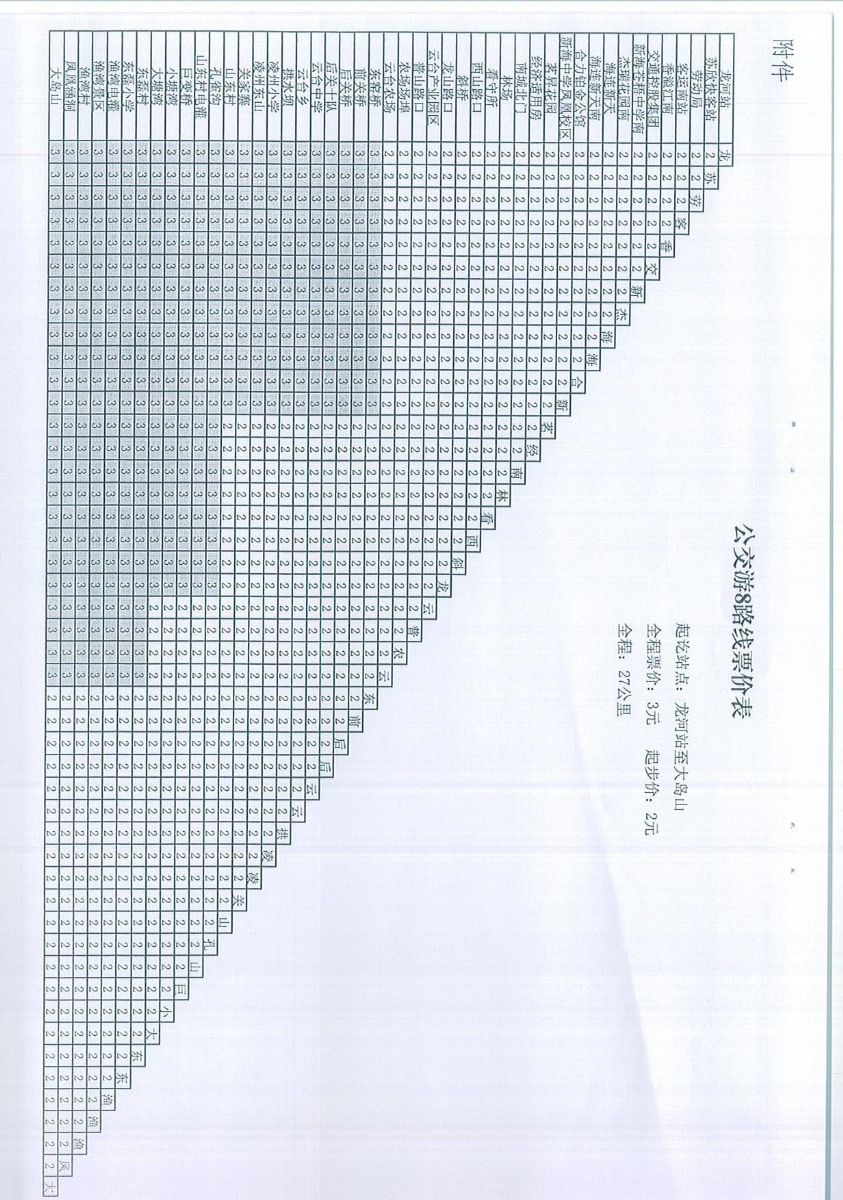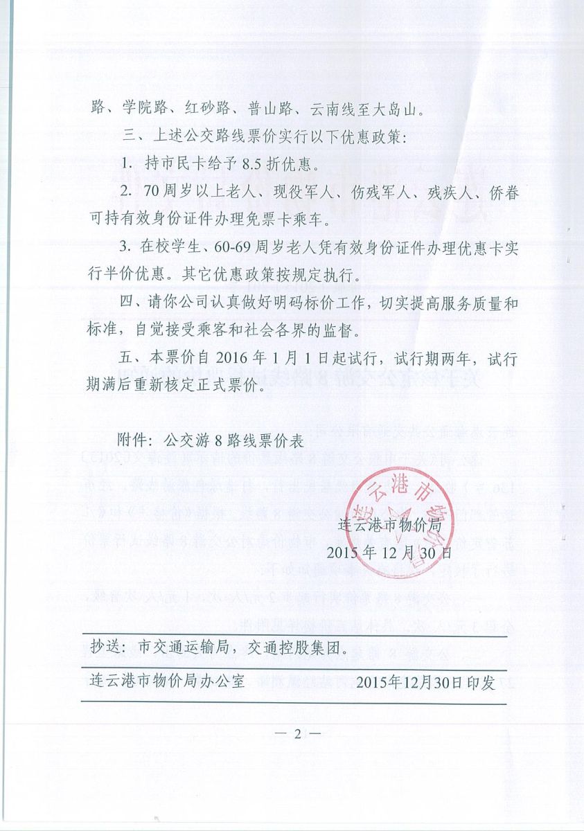 關于核定公交游8路線試行票價的通知