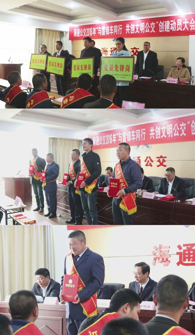 在動員大會上,公司黨委對2015年度“與雷鋒車同行”文明創(chuàng)建先進集體、“黨員先鋒崗”活動先進個人及公交“十佳明星”進行了表彰。會議圍繞2016年“與雷鋒車同行,共創(chuàng)文明公交”活動方案和開展向駕駛員喬曉峰學(xué)習(xí)活動,對2016年文明創(chuàng)建進行了部署。基層單位代表、“港城網(wǎng)絡(luò)善行榜”上榜人物喬曉峰做了表態(tài)發(fā)言。