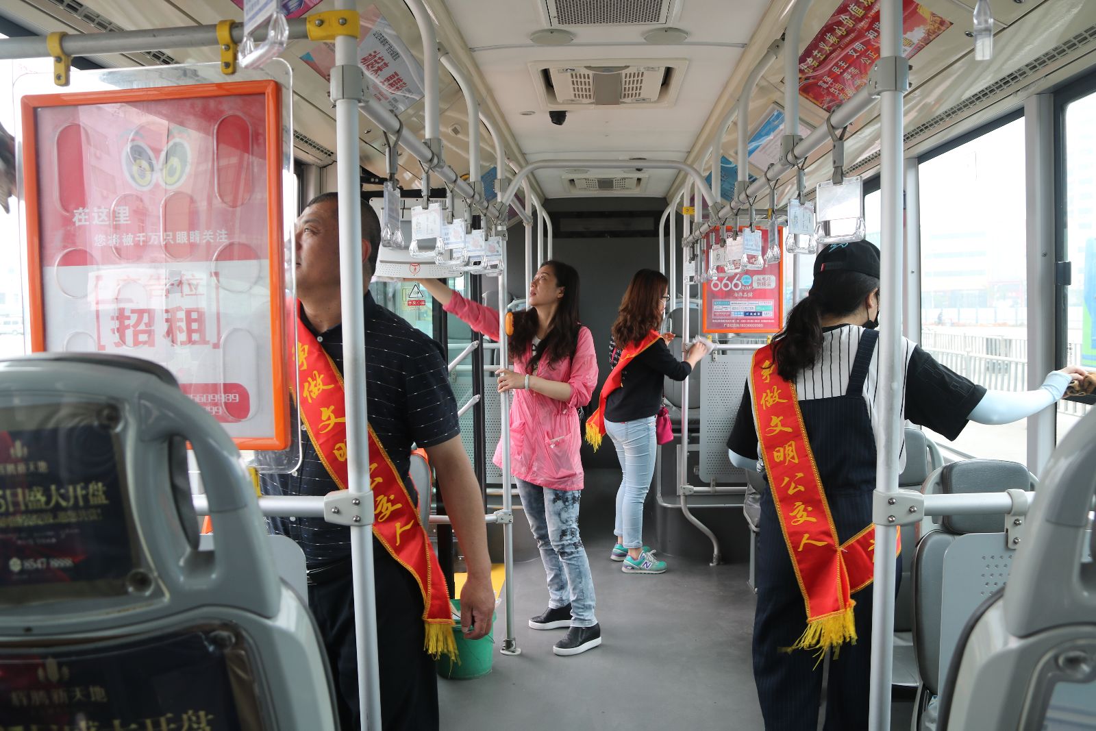 根據(jù)“與雷鋒車同行,共創(chuàng)文明公交”活動方案部署,5月31日上午,公司黨群部組織機關(guān)部室工作人員,分成四組到火車站、新華公交總站、香溢公交總站和西門等四個公交首末站點,對進(jìn)站車輛車廂衛(wèi)生一趟一掃一抹。參加活動的機關(guān)管理人員,逐一打掃進(jìn)站車輛車廂衛(wèi)生,擦洗座位、窗裙、玻璃和扶手,為乘客乘車出行提供良好的乘車環(huán)境。