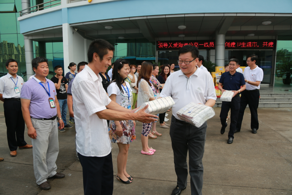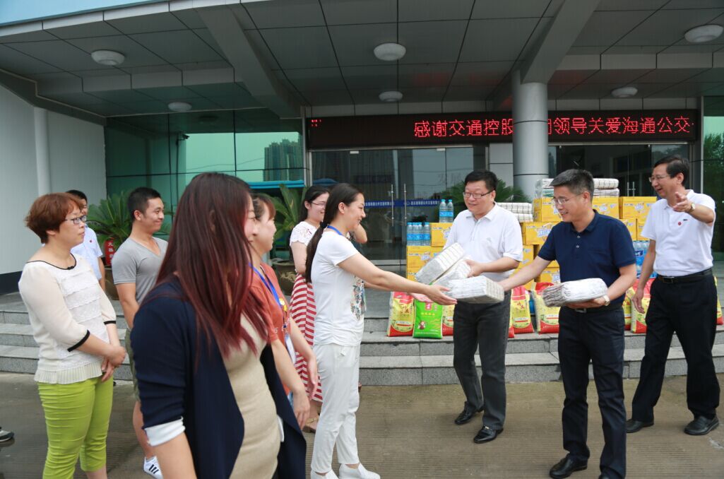 7月26日下午,交通控股集團(tuán)黨委書(shū)記、董事長(zhǎng)劉永能,黨委副書(shū)記、總經(jīng)理仲偉濤,工會(huì)主席王中永等集團(tuán)領(lǐng)導(dǎo)冒著高溫來(lái)到海通公交公司,親切看望慰問(wèn)了高溫下堅(jiān)守崗位的公交一線員工,為他們送去綠豆、白糖、純凈水、飲料等防暑降溫物品,并叮囑他們注意防暑降溫,以良好的狀態(tài)投入到工作中去,做好安全服務(wù)工作,服務(wù)好廣大乘客。劉永能等領(lǐng)導(dǎo)叮囑隨行的公交公司領(lǐng)導(dǎo),一定要關(guān)心員工的身心健康,尤其要做好夏季的防暑降溫工作,把“送清涼、送安全、送法律”活動(dòng)落到實(shí)處,讓廣大員工真正感受到組織的關(guān)愛(ài)。