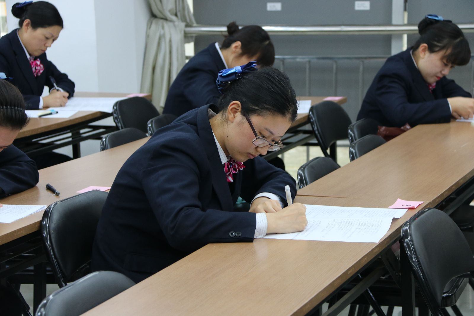 來源:生產(chǎn)運營部 作者:丁敏 為進(jìn)一步提高BRT站務(wù)員服務(wù)技能,規(guī)范服務(wù)操作流程,提升公交服務(wù)形象,經(jīng)公交集團(tuán)研究決定,在BRT站務(wù)員隊伍中組織開展服務(wù)技能競賽活動,按照活動時間安排,10月20日下午,公交集團(tuán)舉辦BRT站務(wù)員服務(wù)技能競賽理論考試,集團(tuán)黨委副書記、紀(jì)委書記徐俊生、副總經(jīng)理趙立喜、工會主席吉錦梅一同參加??荚囎鞔鹬?,吉錦梅對舉辦本次服務(wù)技能競賽的主要目的和意義進(jìn)行了闡述,徐俊生對考場紀(jì)律和注意事項提出相關(guān)要求,最后,副總經(jīng)理趙立喜宣布“連云港市公交集團(tuán)BRT站務(wù)員服務(wù)技能競賽”理論考試正式開始??荚嚞F(xiàn)場,各位參賽選手嚴(yán)格遵守考場紀(jì)律,認(rèn)真思考,細(xì)心作答,努力為自己交上一份滿意的答卷。