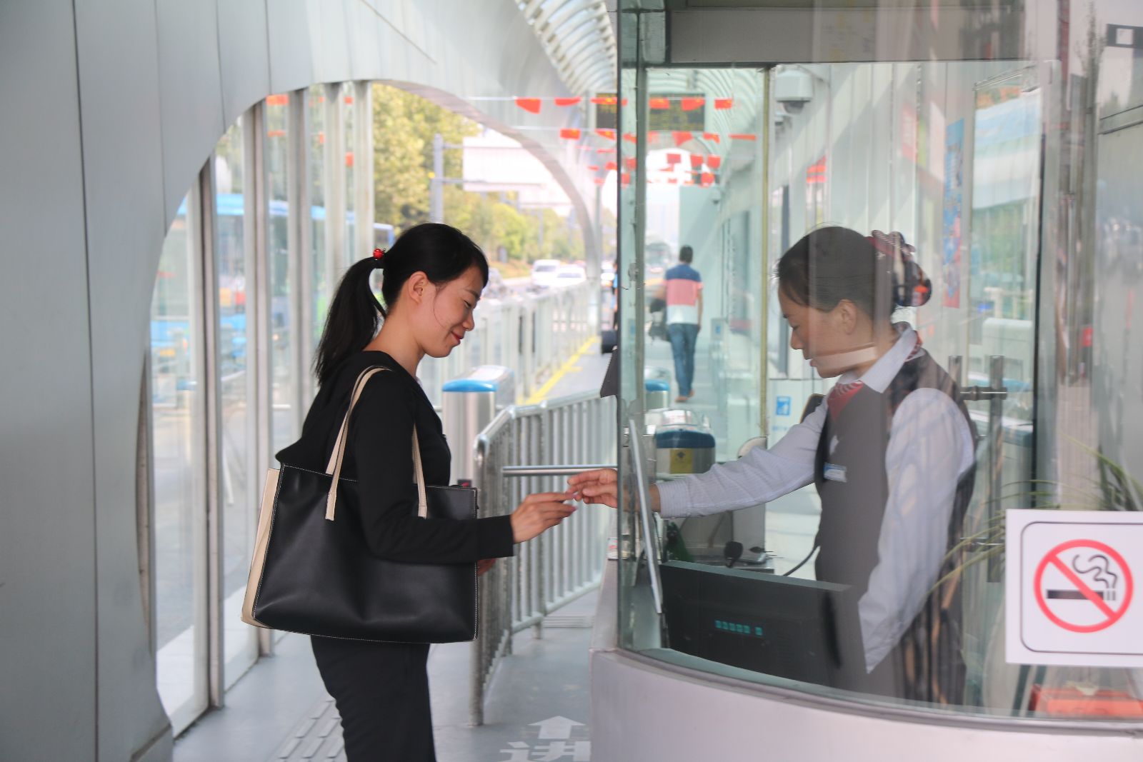 作為BRT的一名站務(wù)員,看到身邊的文明在悄悄的發(fā)生,心中充滿了一種喜悅和自豪。想起以前,乘坐公交車時,人們一擁而上,不排隊的現(xiàn)象經(jīng)常發(fā)生,前推后擠,身材瘦弱的人總會被擠倒,上車后車廂內(nèi)充滿了喧嘩與吵鬧,沒有片刻安寧,乘坐公交出行是一件痛苦的事情。2012年我市開通了BRT快速公交,道路變得寬敞了,公交車輛也已換成嶄新的,如今純電動的綠色環(huán)保公交車也已運行,港城的人們出行更加方便,而乘客文明乘車的行為也有了很大的改觀,有公交卡的人依次刷卡進站,沒卡的群眾投幣進站,人們也開始自覺的排隊,BRT站臺內(nèi)少了許喧嘩,多了份文明。雖然有時BRT車內(nèi)也有不文明的行為出現(xiàn),但大多數(shù)人都能遵守秩序,體現(xiàn)文明,做到不干擾他人。遇到老人或兒童乘車,經(jīng)常有乘客能主動讓座,尤其是年輕人,雖然他們忙碌,辛苦,但能主動關(guān)心和體恤老人和兒童,本身就是一種文明素質(zhì)的體現(xiàn)。當文明成為一種習(xí)慣時,那我們的社會將變得更加和諧和健康。在我日常的站務(wù)執(zhí)行中,經(jīng)常能遇到個別乘客攜帶違禁物品乘車,經(jīng)過耐心的解釋與勸導(dǎo),乘客們都能聽從規(guī)勸,不再攜帶危險品上車。在站臺內(nèi)候車的群眾,雖然也有抽煙的,經(jīng)過解說后,都能自覺的服從我們乘務(wù)人員的勸導(dǎo),主動掐滅煙蒂。吐痰、亂扔果皮的現(xiàn)象也已基本杜絕。偶然遇到有危害社會及群眾的事件時,很多乘客都能挺身而出,維護社會正義。這都是港城人民自BRT 開通以來,取得的文明改變。