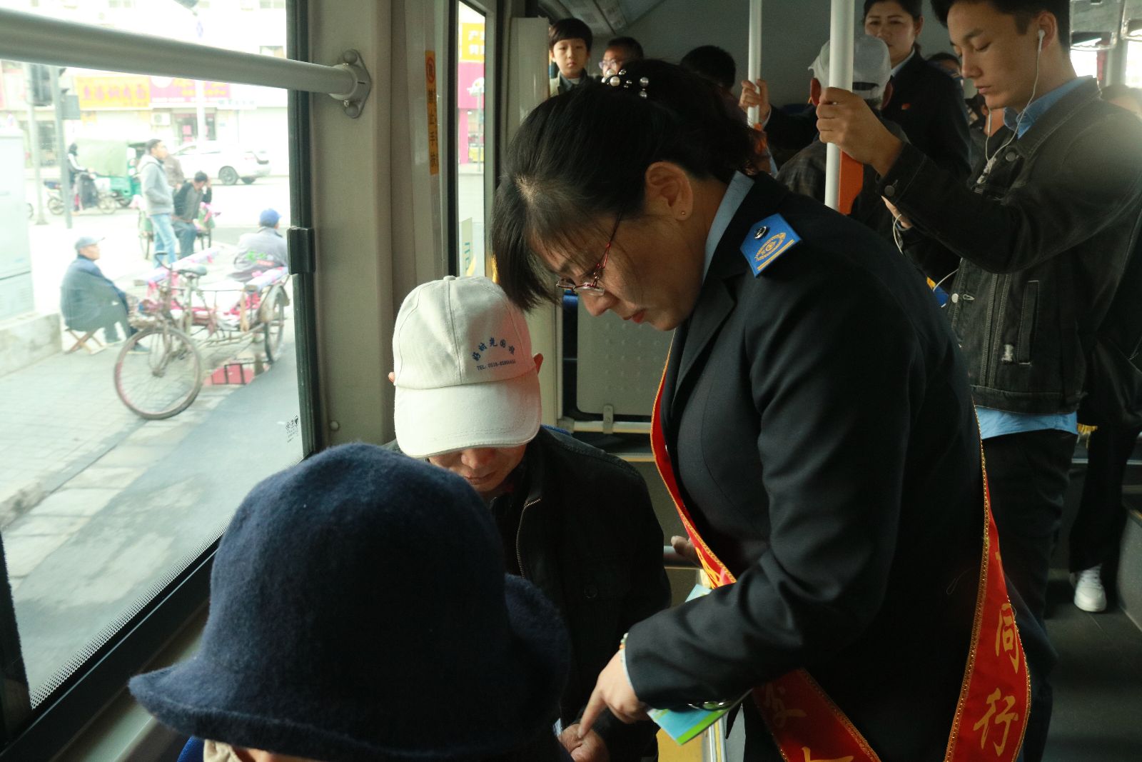 活動當(dāng)天,23路“敬老文明線”投入全部10臺運力,加密班次,并在23路“敬老文明線”車廂內(nèi)營造敬老、愛老、助老的宣傳氛圍,增強市民敬老、愛老意識。參加活動的行管后服人員在車廂內(nèi)為乘車?yán)夏耆擞纤拖路?wù)同時在車內(nèi)、站點發(fā)放公交出行手冊,宣傳公交的同時宣傳敬老文化。