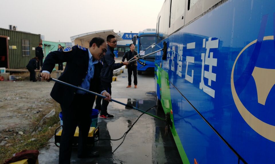 公交海州公司組織人員清洗2017年徐圩馬拉松賽事輸送車輛