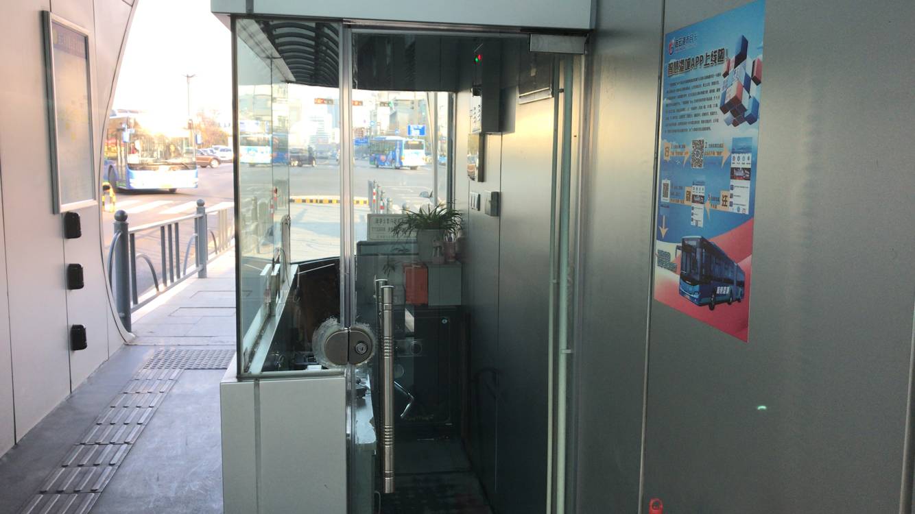 公交集團快速公司統(tǒng)一安裝站臺票房門玻璃門條