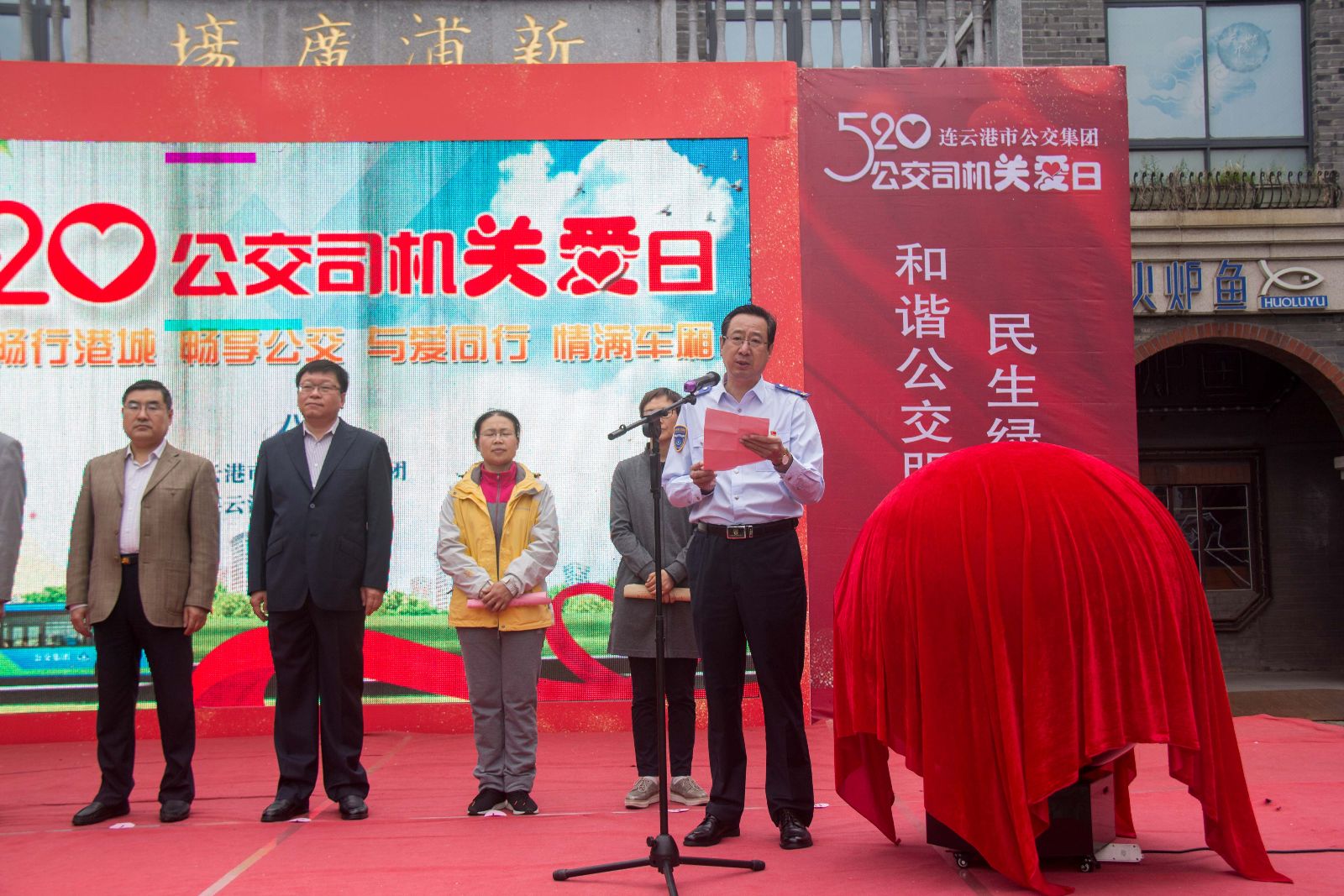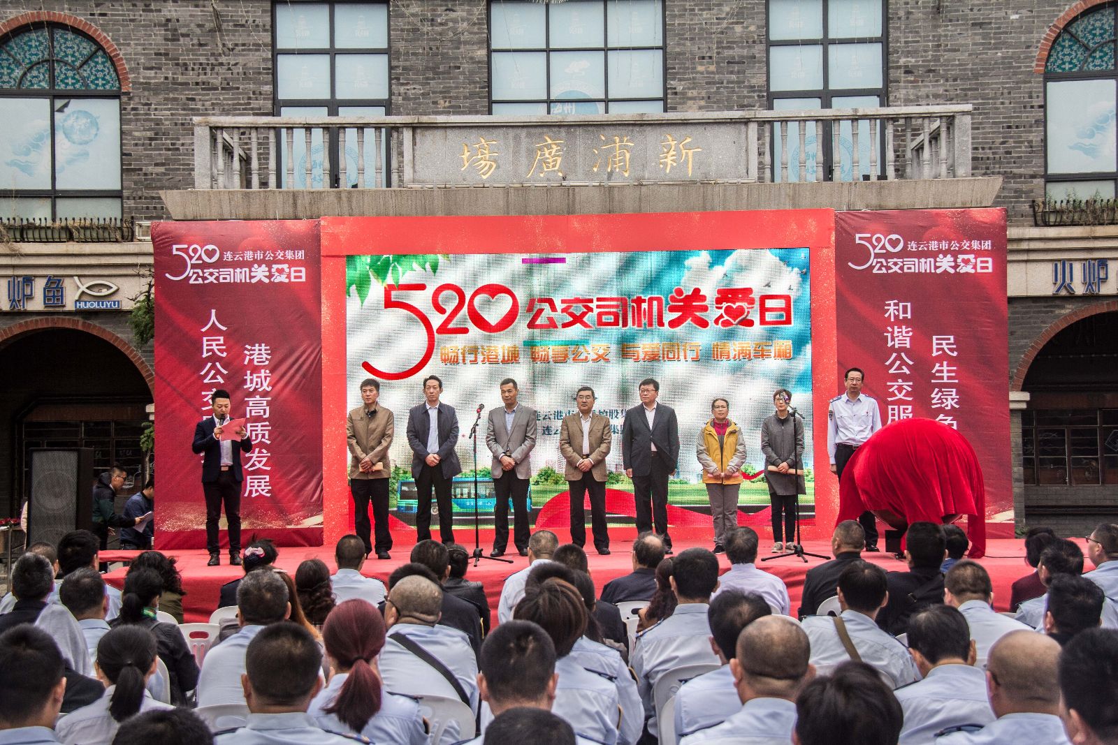 為倡導(dǎo)全社會關(guān)愛公交司機、文明出行,關(guān)注公交事業(yè)的發(fā)展,在5月20日這個特殊的日子里,連云港市公交集團聯(lián)合省內(nèi)12家公交企業(yè),共同開展“5.20公交司機關(guān)愛日”公益活動,呼吁全社會一起來關(guān)心港城公交事業(yè)的發(fā)展,提高對公交駕駛員的關(guān)心,活動在民主路新浦廣場舉行,市總工會副主席陳健,市文明辦副主任吳克典,市交通控股集團黨委書記、董事長劉永能,市交通運輸局副局長藺寧君,市交通控股集團工會主席王中永,市運輸管理處副處長李敏,市公安局公共交通分局副局長張永華,市公交集團黨委書記、總經(jīng)理劉佃華,企業(yè)代表、乘客代表以及長期奮斗在公交一線的優(yōu)秀駕駛員和賢內(nèi)助代表出席活動,公交集團領(lǐng)導(dǎo)班子成員,公交集團權(quán)屬單位代表等200余人參加了本次活動。