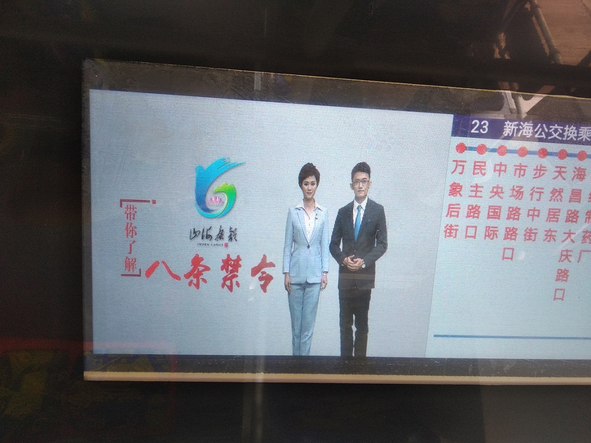 自《連云港市深化機關(guān)作風(fēng)建設(shè)八條禁令》頒布出臺以來,公交集團充分利用自身優(yōu)勢,利用車廂內(nèi)LCD液晶顯示屏為載體宣傳“八條禁令”內(nèi)容,使公交車廂成為市民乘客了解八條禁令的“流動課堂”。