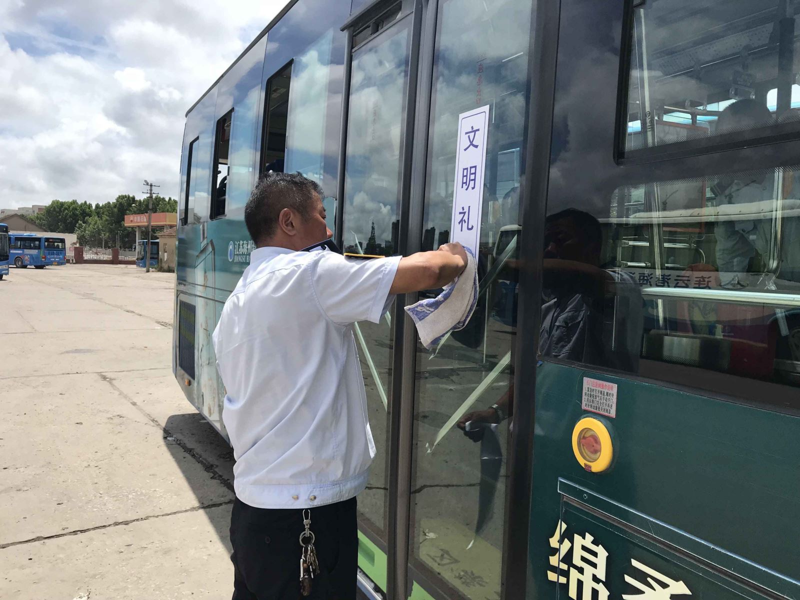 為進一步加大創(chuàng)建文明城市宣傳力度,激發(fā)公交駕駛員創(chuàng)文熱情,大力營造創(chuàng)建氛圍。近日,公交集團海通公交公司組織管理人員對公司所屬車輛張貼新的創(chuàng)文宣傳標語。