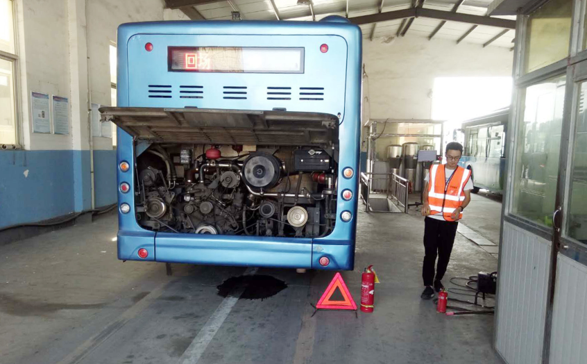 本次年檢工作從8月初開始,共檢驗61臺天燃氣車輛(其中包含18米海格車輛30臺、12米宇通車輛31臺)。主要檢測內(nèi)容有以下三項:一是檢查發(fā)動機、地盤、車身及其附屬設備是否清潔、齊全、有效,漆面是否均勻美觀,與初檢是否相符。二是檢驗車輛的制動性、轉向操作性、燈光、排氣及其它安全性能是否符合“機動車安全運行技術條件”的要求。三是檢驗車輛的三角牌、滅火器是否齊全有效,行駛證、號牌、發(fā)動機號及車架號的車輛檔案所有登記是否與車況相符,車輛是否辦理了審批和異動、變更手續(xù)等。