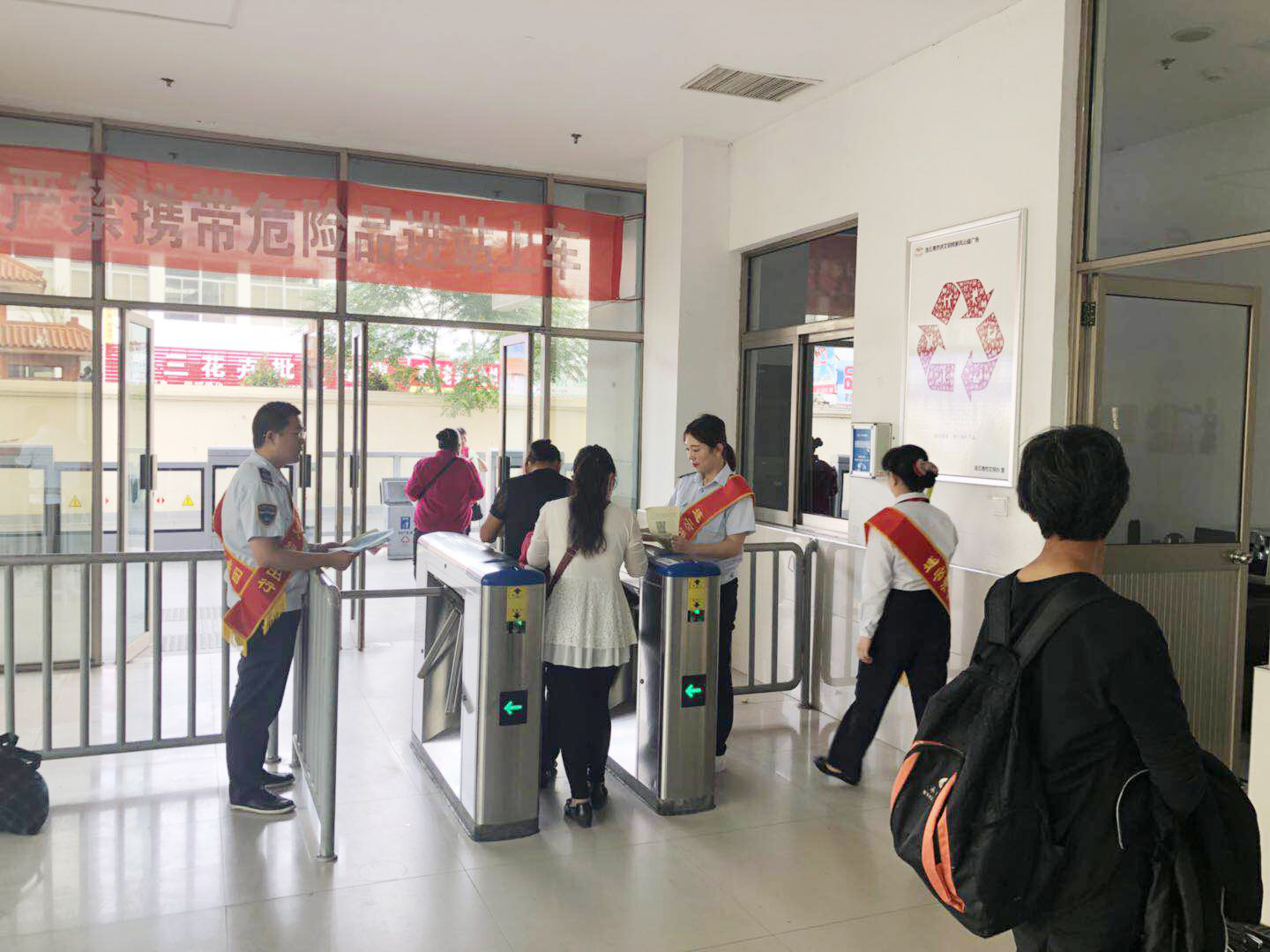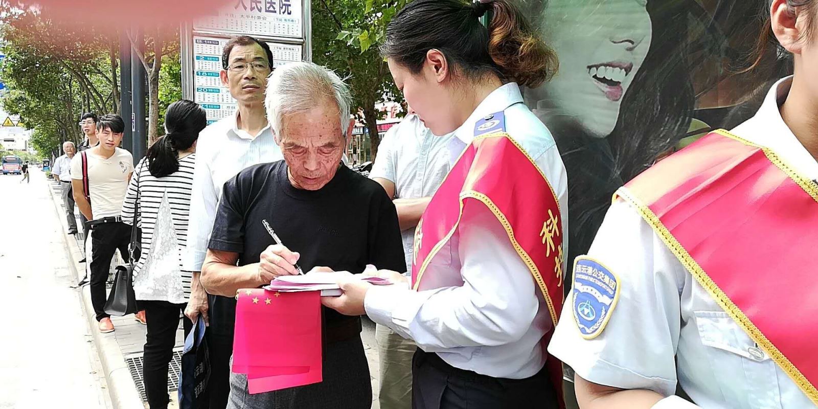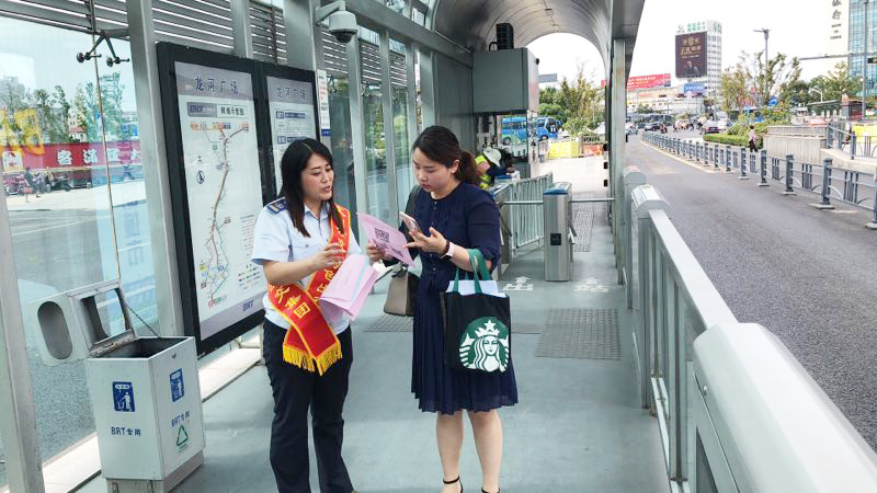 根據(jù)2018年公交出行宣傳周活動(dòng)安排,9月18日上午,公交集團(tuán)組織開展了關(guān)愛殘疾人無障礙乘車暨公交站點(diǎn)在排隊(duì)文明出行活動(dòng),開展公交車輛斑馬線禮讓行人活動(dòng),加強(qiáng)監(jiān)督考核,利用公交車載運(yùn)營(yíng)系統(tǒng),及時(shí)提醒乘客禮讓殘疾人乘車。在公交站點(diǎn)在排隊(duì)文明出行活動(dòng)中,利用海州客運(yùn)站、在海一方公園、市民廣場(chǎng)、龍河廣場(chǎng)4處BRT站臺(tái)以及嘉瑞寶廣場(chǎng)、購(gòu)物中心、第一人民醫(yī)院、蘇寧廣場(chǎng)、海州批發(fā)市場(chǎng)、步行東街、龍河廣場(chǎng)、振興大廈等站8處常規(guī)公交站臺(tái),安排48名志愿者統(tǒng)一服裝、佩戴綬帶,現(xiàn)場(chǎng)發(fā)放2018年公交出行宣傳周倡議書1000余份、乘客滿意度調(diào)查表800余份。