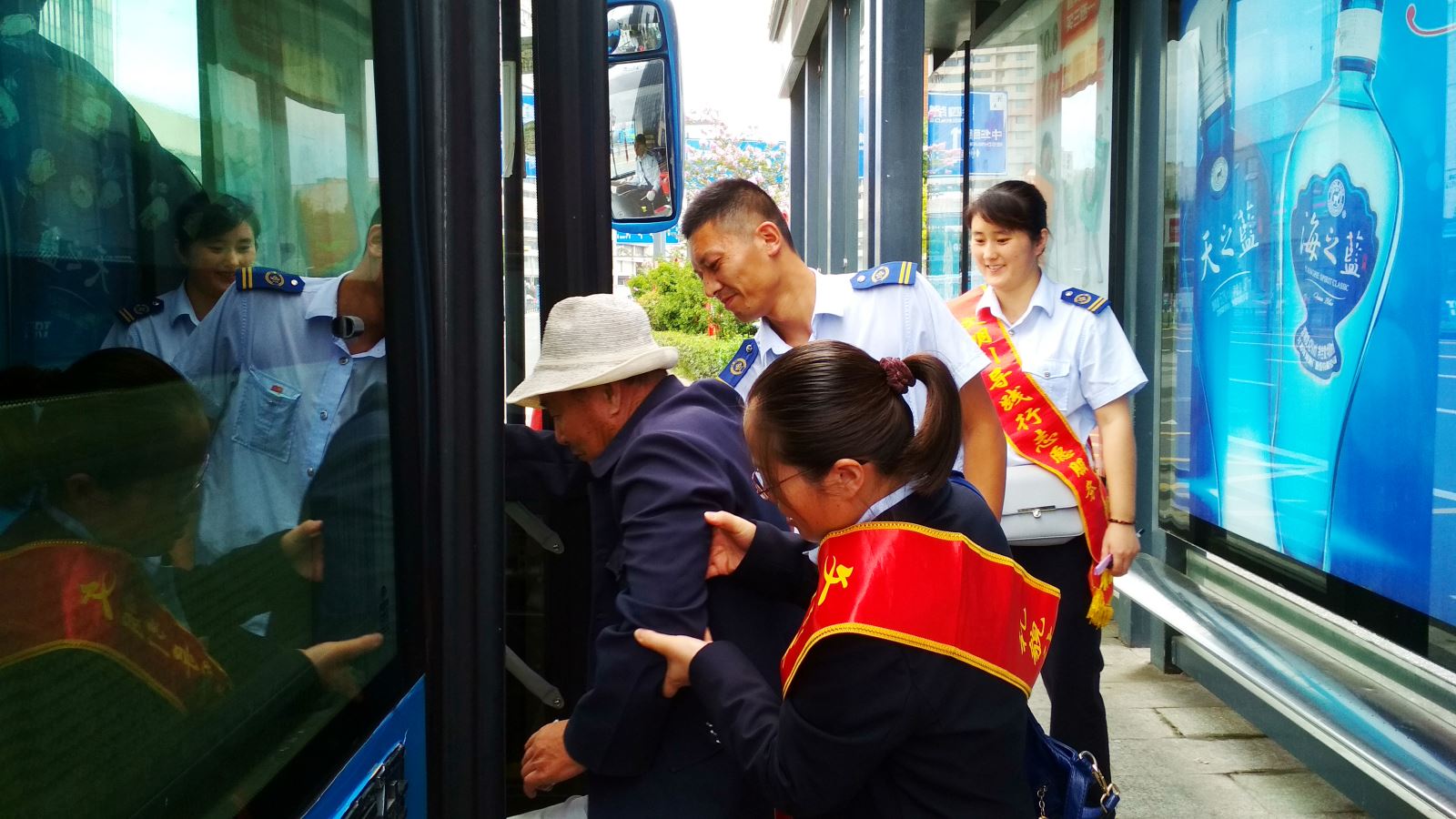 公交集團(tuán)開展關(guān)愛殘疾人無障礙乘車暨公交站點(diǎn)在排隊(duì)文明出行活動(dòng)