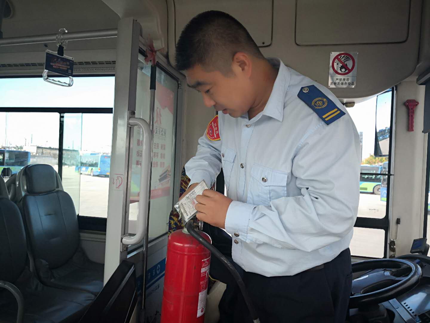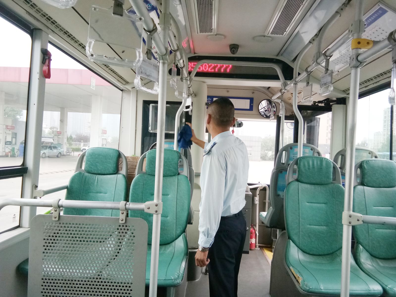 駕駛員打掃車廂,給乘客提供一個整潔的乘車環(huán)境。