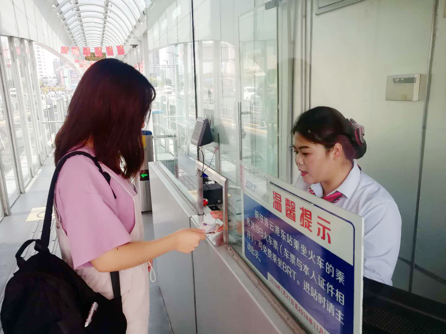 站務(wù)員堅守崗位,為乘客售票;