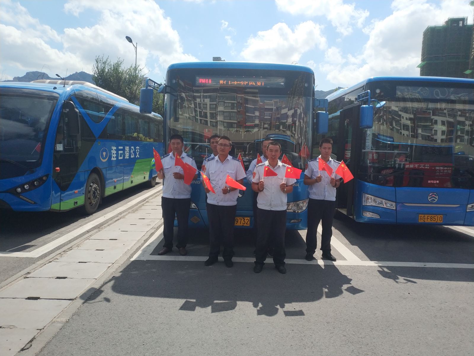 公交集團(tuán)東部公司:手持小國旗歡慶國慶;