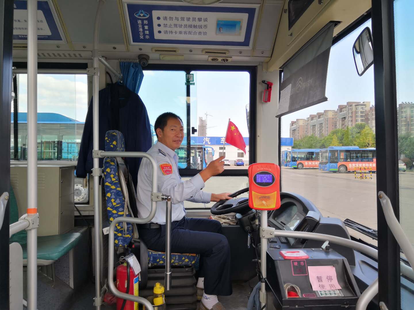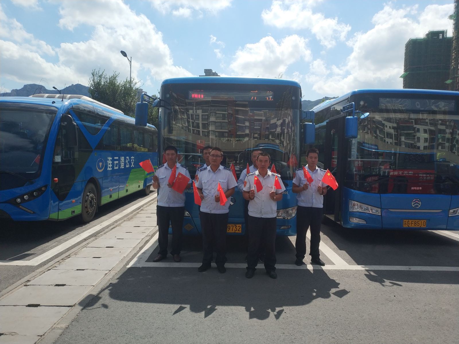 和國(guó)旗合個(gè)影,公交集團(tuán)獻(xiàn)禮祖國(guó)69周年華誕
