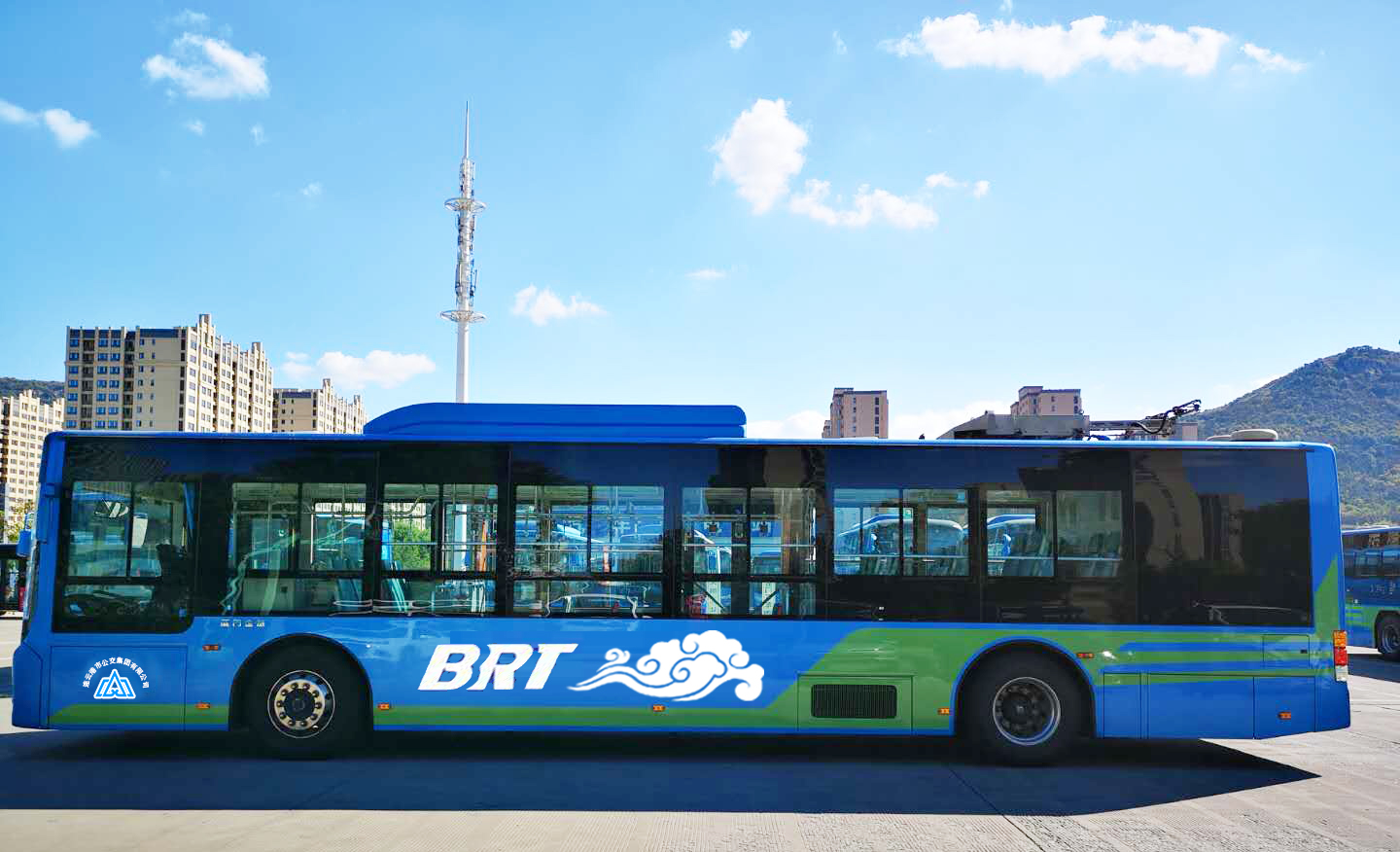 連云港公交車(chē)身整體為藍(lán)色,代表著大海和廣闊的天空,綠色造型代表海鷗,翱翔在藍(lán)天和大海之上;綠色凸顯清新和盎然生機(jī),也表達(dá)了綠色公交的發(fā)展理念。祥云是中國(guó)傳統(tǒng)的吉祥圖案。碧海藍(lán)天、海鷗祥云相得益彰,勾勒出一幅“海鷗飛處祥云追”的祥和畫(huà)卷。也體現(xiàn)出現(xiàn)代公共交通服務(wù)民生的和諧美好。