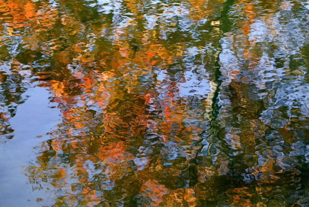 楓葉呈現(xiàn)多姿多彩的顏色,淡黃的、褐黃的、火紅的、橘紅的,紅黃綠相間,點綴湖畔、山 。當楓葉飄落在清澈的岸邊,宛如天然生成的水晶標本。