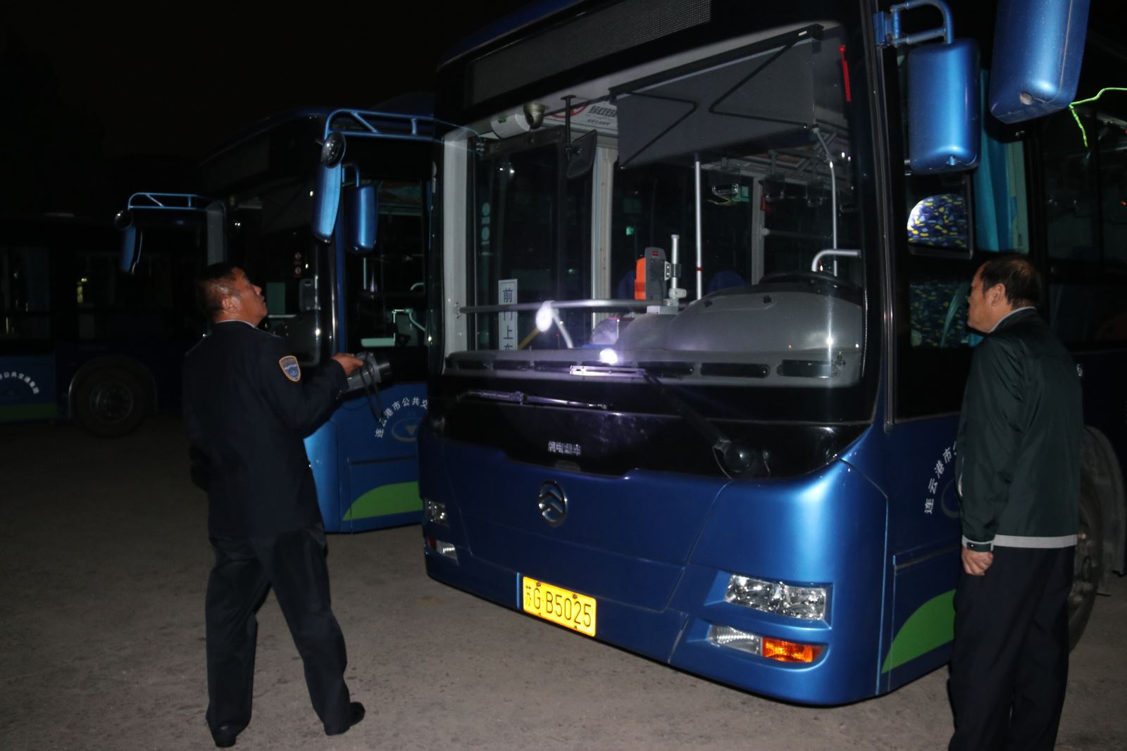 為認(rèn)真落實公交集團(tuán)“安全第一,預(yù)防為主”的文件要求,積極采取多項措施,對標(biāo)找差,及時補(bǔ)足短板。11月21日晚,公交集團(tuán)海通公交公司分公司經(jīng)理劉波帶領(lǐng)安管人員對場站內(nèi)所有運營車輛開展安全夜查,檢查范圍為所屬辦公場所、停車場站、公交車輛。
