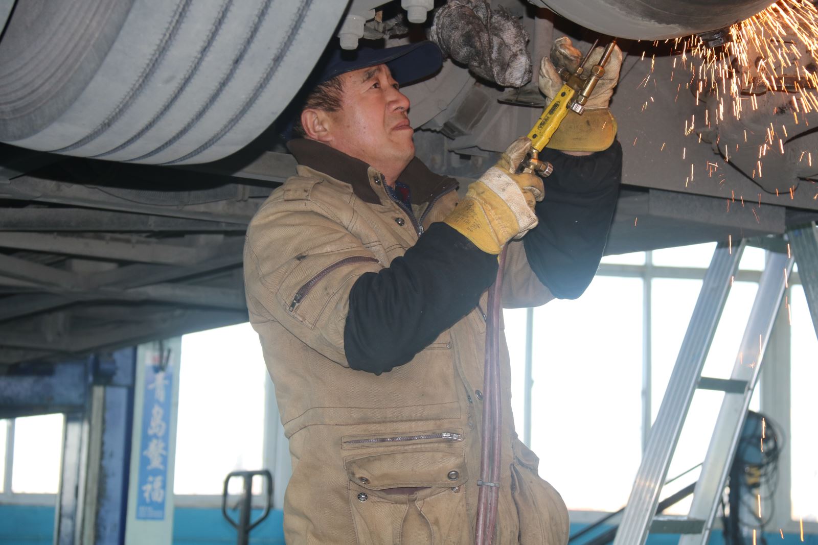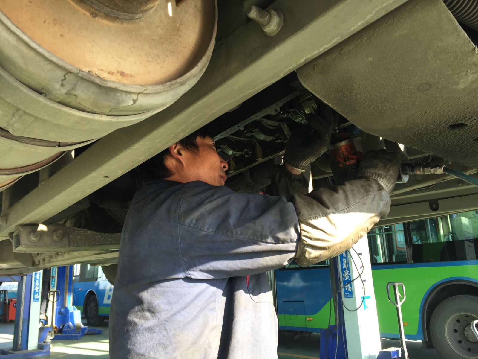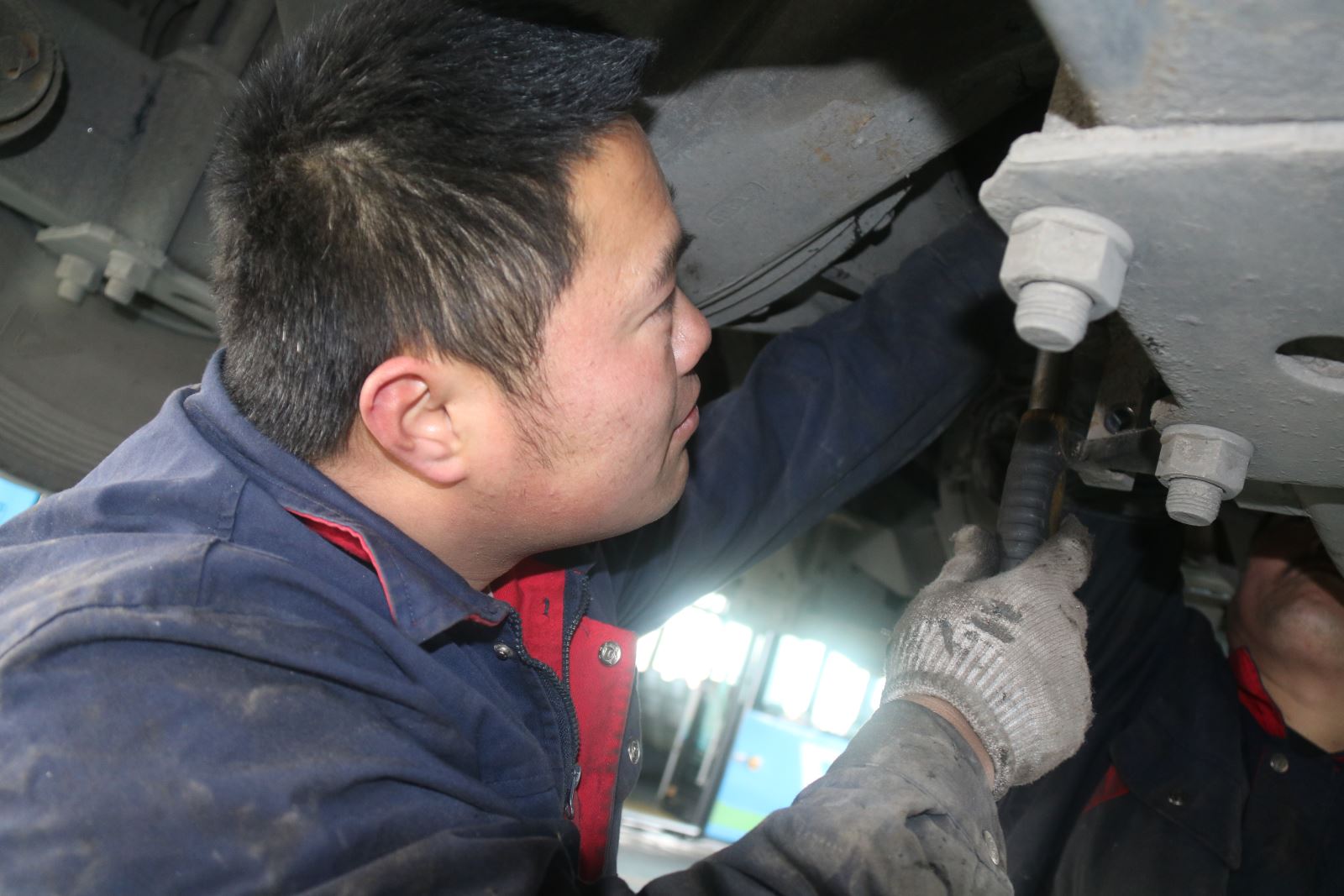 新一年第一天,安機人員認(rèn)真維護公交車輛,見縫插針檢查車輛的每個細(xì)節(jié)