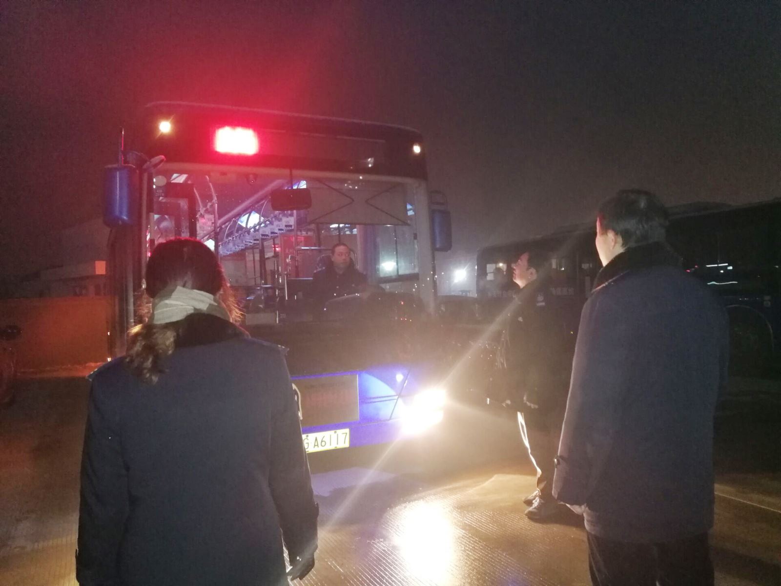 1月10日凌晨,公交集團(tuán)領(lǐng)導(dǎo)班子成員等管理人員深入各線路重點(diǎn)路段,做好巡路探路工作,嚴(yán)守安全第一線。借助信息平臺(tái)和內(nèi)部微信宣傳渠道,反復(fù)對(duì)駕駛員冬季惡劣天氣安全行車進(jìn)行交待,鞏固冬季安全行車操作要點(diǎn)和車輛維護(hù)要求,加強(qiáng)線路安全監(jiān)控,確保各線路運(yùn)營安全穩(wěn)定。機(jī)務(wù)管理人員,加強(qiáng)對(duì)運(yùn)營車輛的檢查,對(duì)方向制動(dòng)、電路、油路、燈光、氣路、車載空調(diào)等關(guān)鍵部位進(jìn)行主要檢查,同時(shí)強(qiáng)化一線駕駛員應(yīng)急處置能力,確保車輛安全運(yùn)營。在早檢查過程中,安管人員對(duì)駕駛員進(jìn)行安全交代,逐個(gè)叮囑,要求駕駛員要密切關(guān)注天氣預(yù)報(bào),提前到崗,切實(shí)做好“一日三檢”, 及時(shí)排查安全隱患,發(fā)現(xiàn)問題及時(shí)上報(bào),危險(xiǎn)路段、客流密集路段一定要減速慢行,確保安全行車。