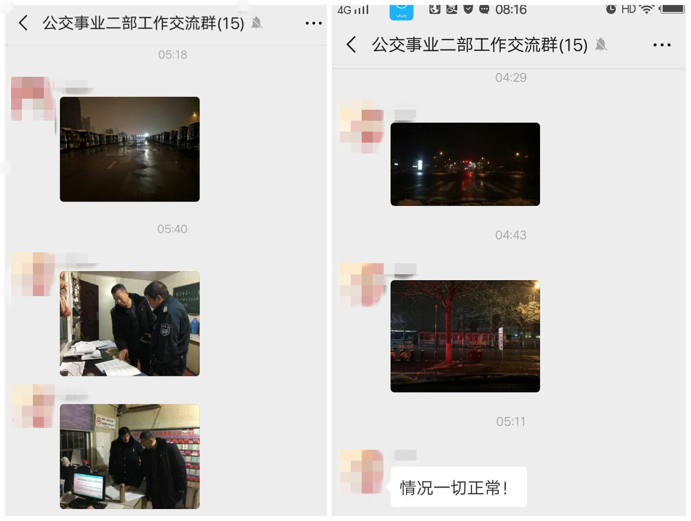 公司提前進(jìn)入臨戰(zhàn)狀態(tài),全面實(shí)行24小時(shí)值班、倒班制度,各相關(guān)負(fù)責(zé)人明確責(zé)任分工,做到快速反應(yīng)、有效應(yīng)對(duì)。各領(lǐng)導(dǎo)干部、管理人員、調(diào)度員、駕駛員均提前到崗,幫助清掃積雪、鏟除積冰,保證公交首班車準(zhǔn)點(diǎn)發(fā)車。經(jīng)過全員的共同努力,首班車輛全部準(zhǔn)點(diǎn)發(fā)出,保障了線路的有序運(yùn)營。