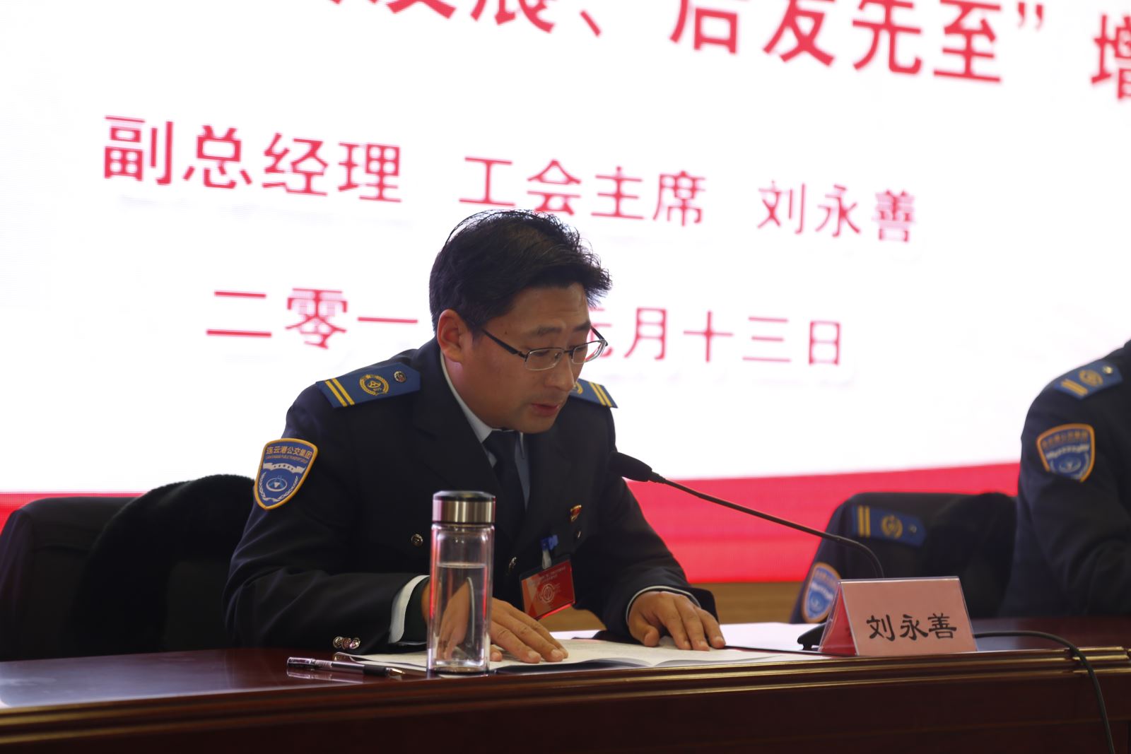 公交集團副總經(jīng)理、工會主席劉永善作《民主增活力,和諧促發(fā)展,為實現(xiàn)公交“高質(zhì)發(fā)展、后發(fā)先至”增添動力》工會工作報告,報告從六個方面總結(jié)了2018年公交集團工會在上級工會和集團黨委的正確領(lǐng)導下所開展的各項工作和取得的成績,感謝上級工會、集團領(lǐng)導和廣大職工一年來對工會工作的關(guān)心和支持。同時又從全面提升職工素質(zhì)、維護職工合法權(quán)益、加強工會自身建設三個方面對2019年工會工作提出了高標準、嚴要求。