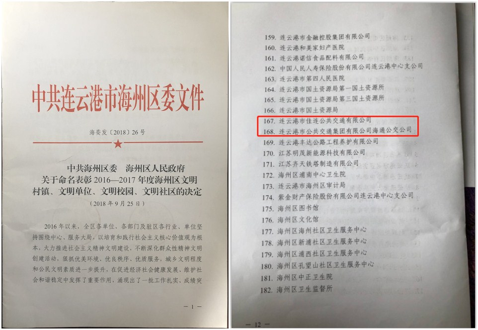 近日,我區(qū)、市文明單位評(píng)選活動(dòng)揭曉,公交集團(tuán)快速公交事業(yè)部、公交集團(tuán)公交事業(yè)一部、公交集團(tuán)公交事業(yè)二部被評(píng)為“2016-2017年度連云港市文明單位”,公交集團(tuán)快速公交事業(yè)部、公交集團(tuán)集團(tuán)公交事業(yè)一部、公交集團(tuán)公交事業(yè)二部、公交集團(tuán)經(jīng)營發(fā)展事業(yè)部被評(píng)為“2016-2017年度海州區(qū)文明單位”,受到市委市政府、區(qū)委區(qū)政府通報(bào)表彰,標(biāo)志著公交集團(tuán)精神文明創(chuàng)建工作邁上新臺(tái)階。