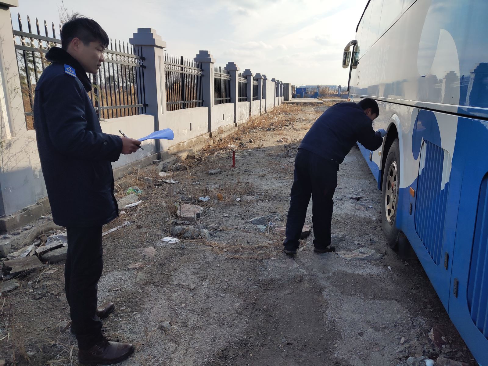 為做好公交車輛安全防范,進(jìn)一步加強(qiáng)下線待運(yùn)營(yíng)車輛技術(shù)管理,保證車輛設(shè)施設(shè)備完好,2月底,公交集團(tuán)機(jī)務(wù)技術(shù)事業(yè)部書(shū)記許增磊帶領(lǐng)相關(guān)檢查人員來(lái)到鹽池西路停車場(chǎng)對(duì)下線待運(yùn)營(yíng)車輛進(jìn)行全面檢查,此次檢查內(nèi)容主要有:一是對(duì)車輛的安全部件、車載設(shè)施進(jìn)行逐一檢查,查看有無(wú)缺失,確保車輛未經(jīng)私自拆用。二是根據(jù)輪胎胎壓、胎體老化程度對(duì)車輛輪胎進(jìn)行逐一排查,確保輪胎胎壓達(dá)到標(biāo)準(zhǔn)胎壓要求。