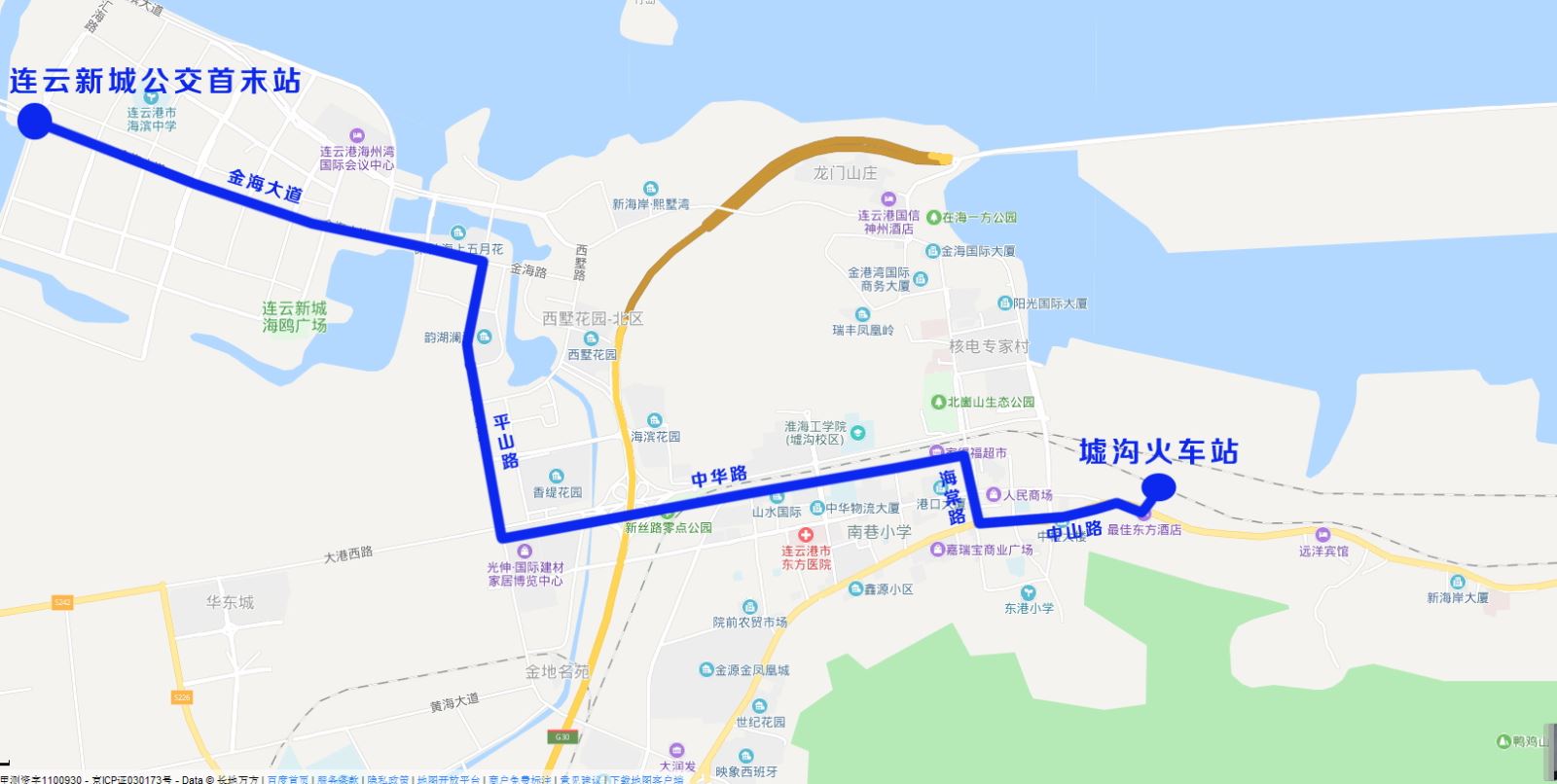 2、途經(jīng)站點(diǎn):墟溝火車站、石門橋、墟溝購(gòu)物中心、購(gòu)物中心南、海關(guān)、東方醫(yī)院、西園小區(qū)北門、德蘭光伸、海洋環(huán)境監(jiān)測(cè)局、平山北路金海大道口、保稅中心、新城商務(wù)中心、連云新城首末站。