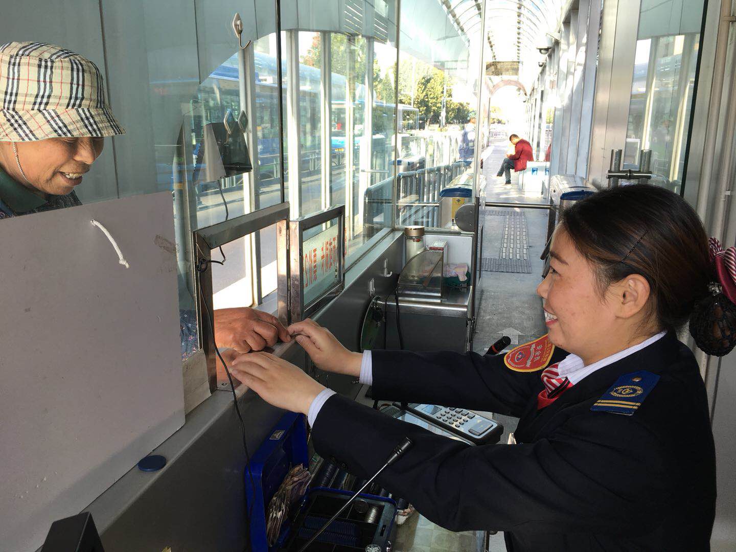 曾經(jīng)在振華路站臺發(fā)生過這樣一件事,那天是站務(wù)員王梅值班。一位大爺晚上一身酒氣的要來坐車,開始,王梅只以為是一名醉漢要來找麻煩,后來看他表情是真著急,一直用手指在玻璃上寫著公安,王梅以為要找110。由于這位大爺是個啞巴,幾名熱心乘客上前幫忙最終也沒能理解大爺想要表達(dá)什么。在王梅的耐心安慰下,老人把他女兒電話從錢包里掏出來了,經(jīng)過聯(lián)系,終于明白老人是要去公安小區(qū)??粗先诉M(jìn)了站坐上車,王梅又主動撥打了老人女兒的電話,告知了車牌號以及公交車到站的大概時間,讓老人的女兒到車站接老人回家。