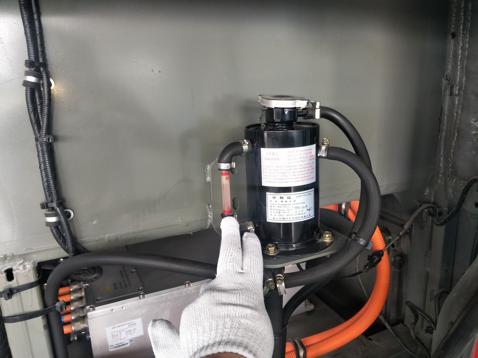 3.熱車后,檢查防凍液儲(chǔ)水罐上端的回水管回水情況,若回水不暢或堵塞會(huì)造成水溫過(guò)高。