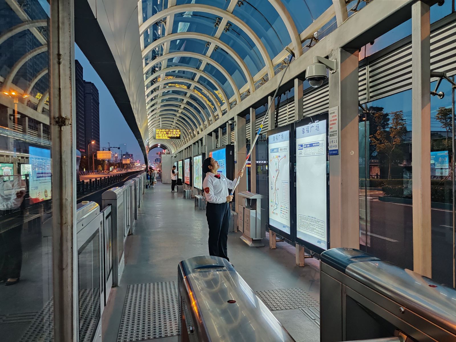 這個點,許多人已經(jīng)吃完了晚飯,有些甚至已經(jīng)和家人散完步準備洗漱入睡,我們的站務(wù)員們還堅守在崗位上,送完常規(guī)線的最后一班乘客,她們還會迎來夜班線的第一班乘客。別看她們外表柔弱,關(guān)鍵時刻,她們也是為乘客化解過矛盾,給危在旦夕的乘客做出最快急救措施的人,她們是港城公交人里的鏗鏘玫瑰。