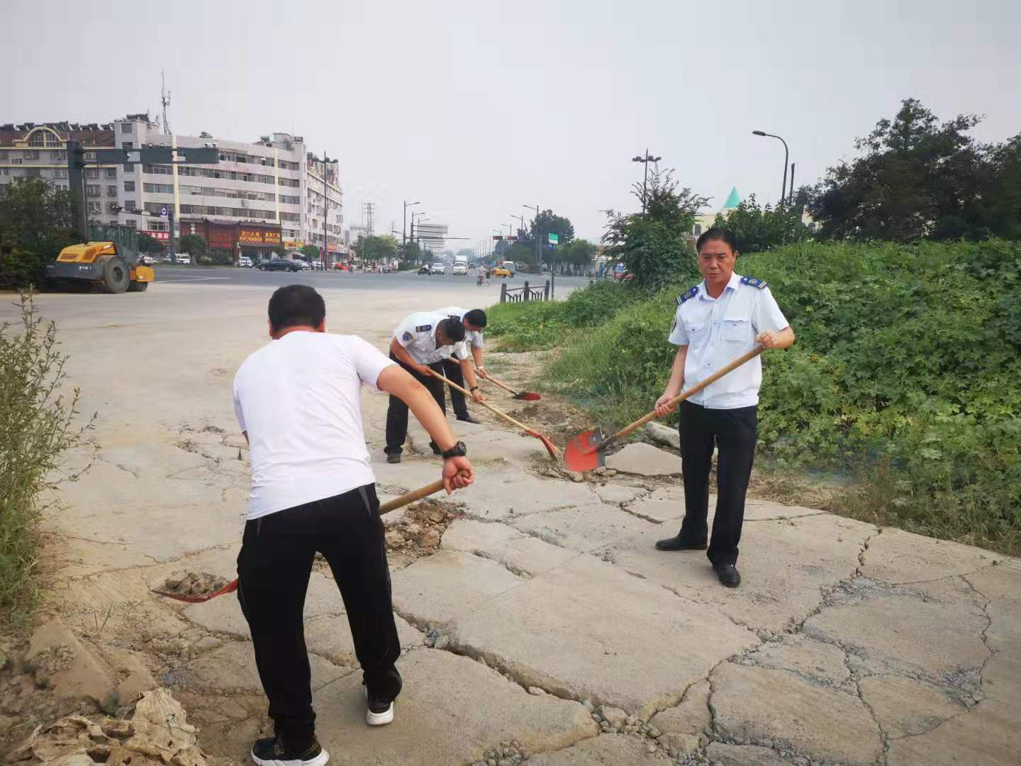 江化北路停車(chē)場(chǎng)內(nèi)每天出入公交車(chē)輛達(dá)數(shù)百臺(tái)次,近日,由于天氣連續(xù)高溫和暴雨的沖刷,導(dǎo)致場(chǎng)站出口處部分路面出現(xiàn)坑槽、沉陷等狀況,對(duì)出入公交車(chē)輛底盤(pán)造成嚴(yán)重安全隱患,也給上下班員工的通行帶來(lái)不便。公交集團(tuán)經(jīng)營(yíng)發(fā)展事業(yè)部佳連分公司經(jīng)理武傳德立刻行動(dòng),召集管理人員拿起鐵鍬扥工具修補(bǔ)破損路面,大家將泥土和沙石填置到低洼損壞的路坑中,為提高效率,有的同志甚至摒棄工具,徒手搬運(yùn)磚石和石塊,不到1小時(shí),坑洼的路面被修復(fù)平整。