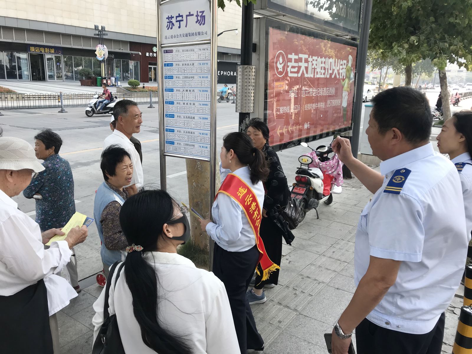 在海州客運(yùn)站、在海一方公園、市民廣場、龍河廣場4處BRT站臺以及嘉瑞寶廣場、購物中心、第一人民醫(yī)院、蘇寧廣場、海州批發(fā)市場、步行東街等站6處常規(guī)公交站臺,公交集團(tuán)安排40余名佩戴綬帶的工作人員作為志愿者,現(xiàn)場發(fā)放公交出行宣傳周倡議書1000余份、乘客滿意度調(diào)查表600余份,志愿者們還協(xié)助公交駕駛員積極維持車輛進(jìn)站秩序,引導(dǎo)乘客自覺排隊(duì)上、下車,主動為老弱病殘?jiān)械忍厥獬丝吞峁┍憬莘?wù),倡導(dǎo)市民遵守乘車秩序,形成良好的社會風(fēng)尚。