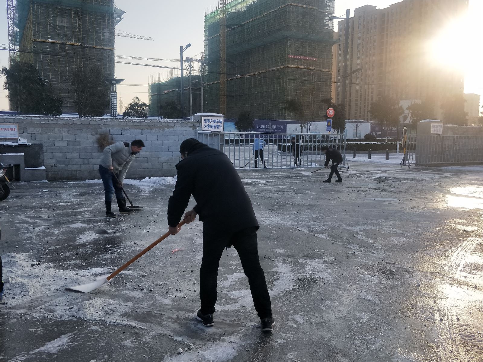第二天一早,居然有十幾名駕駛員準(zhǔn)時(shí)來(lái)到植物油廠停車場(chǎng),有的自帶工具、有的摩拳擦掌,有的說(shuō)“在家待了這么些天,正好出來(lái)運(yùn)動(dòng)運(yùn)動(dòng)。”還有的說(shuō):“港城突降大雪,為保公交運(yùn)輸安全,哪里需要我們,我們就到哪里!”針對(duì)疫情,經(jīng)理朱華麗要求所有人員在掃雪鏟冰的過(guò)程中一定要注意個(gè)人防護(hù),戴好口罩和手套、不扎推,做好安全防護(hù)措施。公司領(lǐng)導(dǎo)班子帶頭與駕駛員們一起不畏嚴(yán)寒,拿起雪鏟、雪推、鐵鍬、掃帚、融雪劑等工具,相互配合、齊心協(xié)力,一點(diǎn)點(diǎn)地將停車場(chǎng)內(nèi)積雪和冰層鏟起集中堆放。