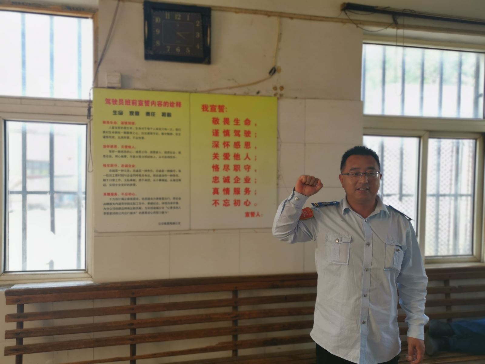 活動三:開展“駕駛員宣誓”活動。我宣誓:敬畏生命……忠誠企業(yè)……不忘初心,隨著駕駛員一聲聲鏗鏘有力的誓詞,安全這顆種子在心中深深的扎下了根。事業(yè)一部以強化全員參與感為著力點,將安全行車意識潤物細無聲的潛入到每一位駕駛員心中。