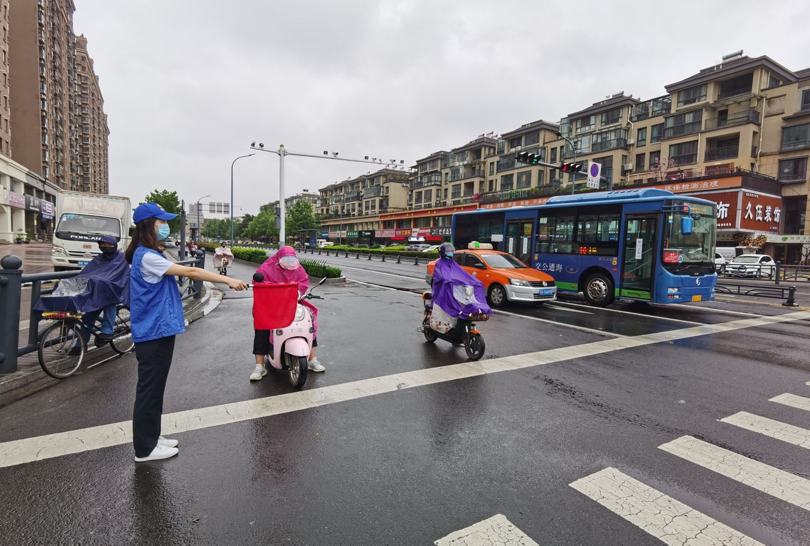 在為期一個月的志愿服務(wù)活動中,夏季雨期頻繁,又恰逢7月22日至24日省創(chuàng)文檢查組來連督查,但是公交集團志愿者們在惡劣天氣中,堅守崗位,勸導廣大市民文明出行,營造安全暢通、文明和諧的道路交通環(huán)境。