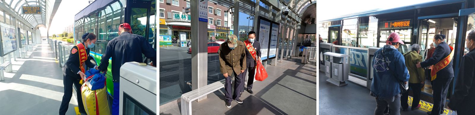 10月22日,快速公交事業(yè)部組織志愿者們在購物中心站、西園路站、五羊路站、海州客運站等老年乘客較多的站臺開展敬老愛老志愿服務(wù)活動。在活動中,志愿者們身披標有“敬老愛老,公交在行動”的紅色綬帶,有的幫助獨自乘坐公交車的老人提行李,有的攙扶行動不便的老人一直到車上坐下,這讓白發(fā)蒼蒼的老人們笑容滿面,空氣中彌漫著濃濃的溫情,乘客們紛紛豎起大拇指,對港城公交的暖心活動贊嘆不已。受到志愿者的感染,公交車上有年輕乘客主動給老年人讓座,有的還主動幫助志愿者一起攙扶老年人。志愿服務(wù)活動既讓老人們感受到了社會的關(guān)愛,同時也增強了志愿者們尊老、愛老的傳統(tǒng)美德教育,通過我們的身體力行大力向全社會倡導關(guān)愛老人,營造和諧美好的社會氛圍。
